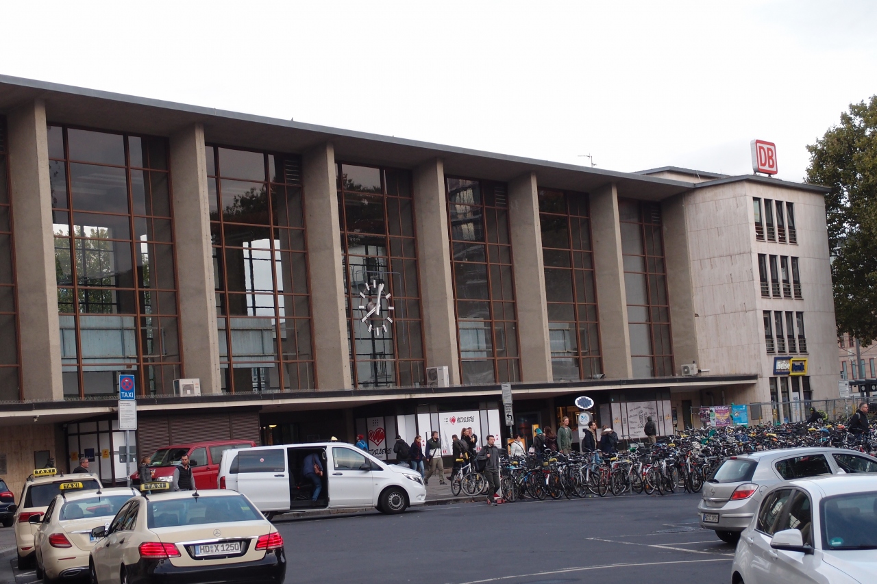 駅前には市電乗り場があり、5番か21番でビスマルク広場に行くことができます。また、バス停もありますが、路線によって停留所の位置が異なっており、注意が必要です。市電のチケットは券売機で、バスのチケットはドライバーから購入しました。ハイデルベルク旧市街までなら1.4ユーロです。