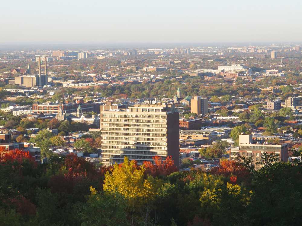 歩いて登るのはきつそうだったので、地下鉄モンロワイヤル駅前から11番のバスで行きました。11番バス停には張り紙がしてあり、バス停が道路を渡った反対側に移動したことが書かれていました。半信半疑で指定されたところに行ってみると、同じようにバスを待っている観光客が数人いたので、安心しました。すぐにバスが来て、展望台の写真を見せて降りる駅をおしえていただきました。展望台はいくつかあるようなので、注意が必要です。