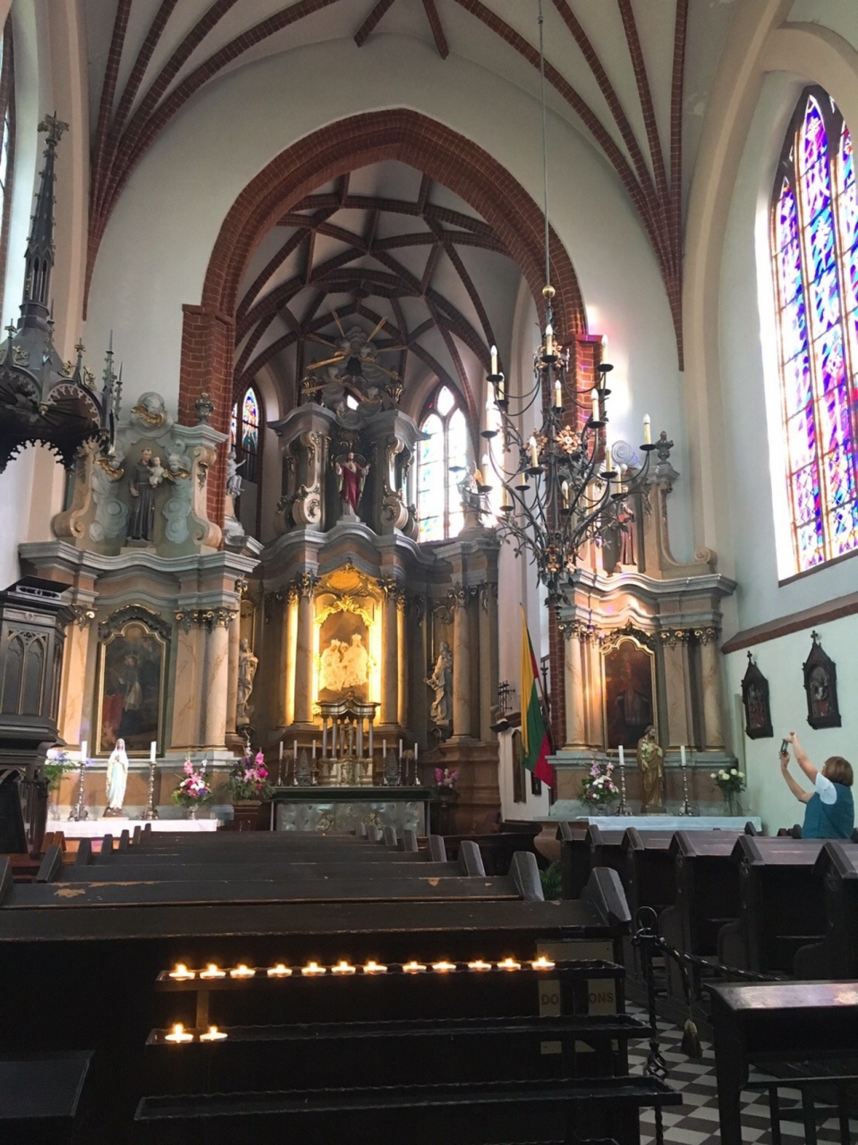 外観の時点で大分目立ちますしヴィリニュス旧市街内の教会の中では代表的な部類に入るような気がするので他の教会に比べると観光客が少し多かったです。