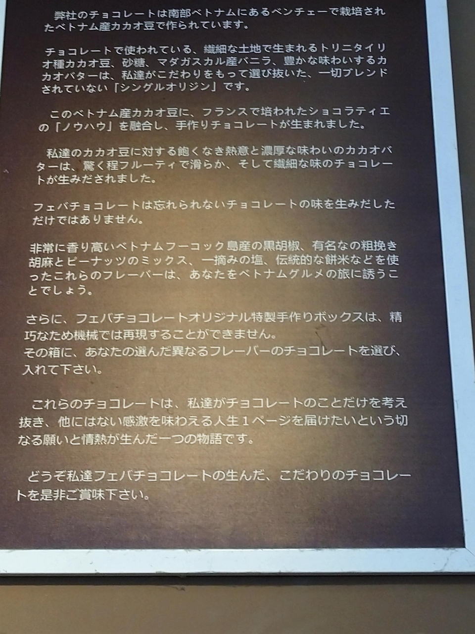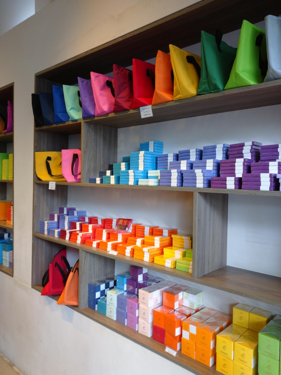 カラフルなパッケージが非常に印象的ですが、ベトナム産カカオ豆で作られた一口サイズのチョコレートもとても美味しいです。黒コショウやピスタチオがお薦めで、他にもココナッツやジンジャーなど品数は全部で18種類あり、自分で選んで箱詰めすることもできます。約50円/枚程度なので12枚入りでも500円/箱とお手頃価格で、お土産には最適です。