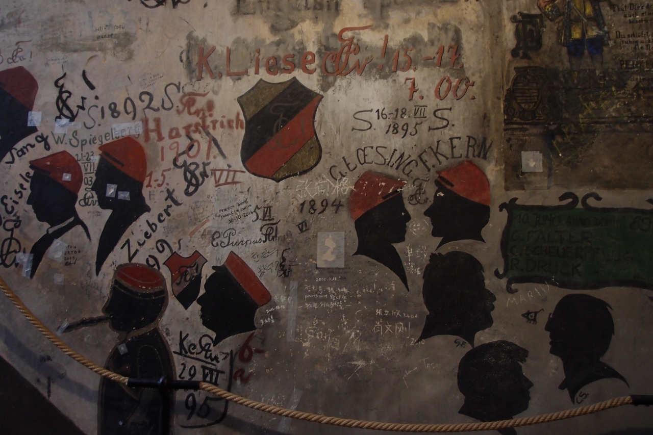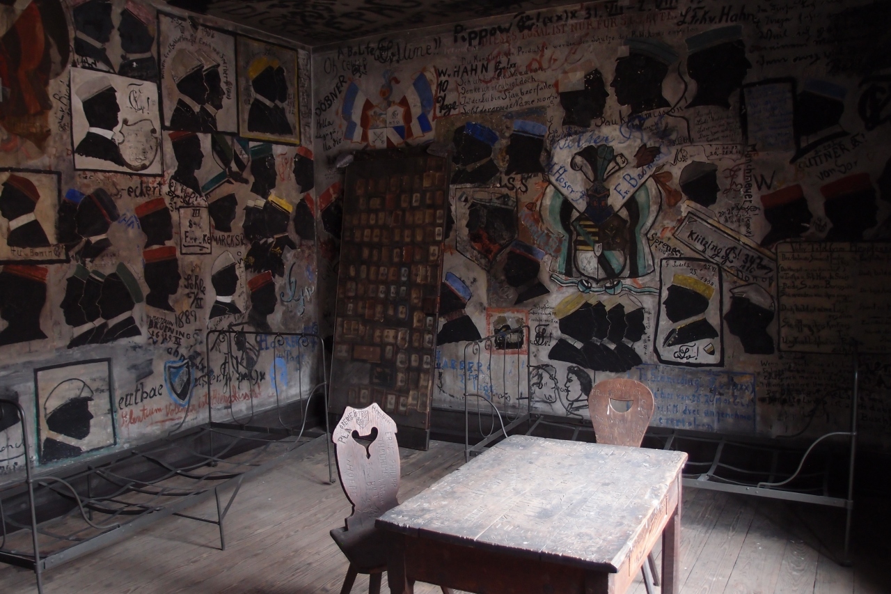 1712年から1914年まで学生の牢獄として使われていた施設です。机と椅子とベッドが置かれた独房には天井や壁のいたるところに当時の落書きが残されています。