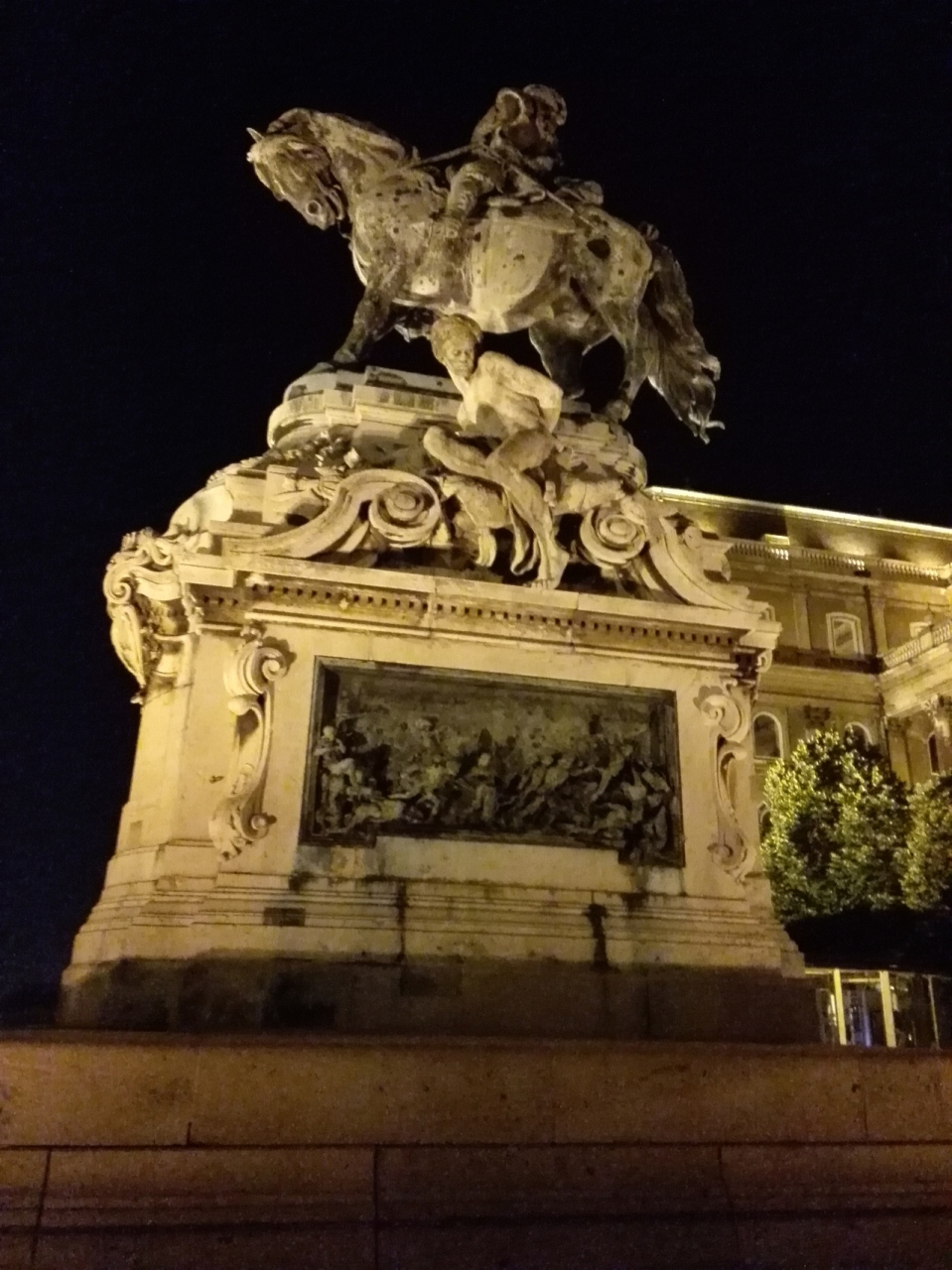 ウィーン防衛に尽力したトルコ戦争の英雄です。王宮の前の広場、ドナウ川側に面した場所によって置かれています。高い台座の上に、馬にまたがった騎馬像です。台座前からでも見上げるほどですが、高台の丘から更に高い位置で、街を見下ろしています。
