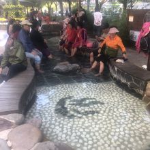大田市内ではかなりメジャーな観光スポットだと思います。地下鉄儒城温泉駅からは徒歩で7分くらいです。地下鉄駅から少し北に行き、大きな交差点を右に曲がると足湯があり、花がたくさん咲いている場所が中心部です。日曜日に行きましたので、たくさんの人が足湯を楽しんでいました。私足が濡れるので遠慮しましたが。