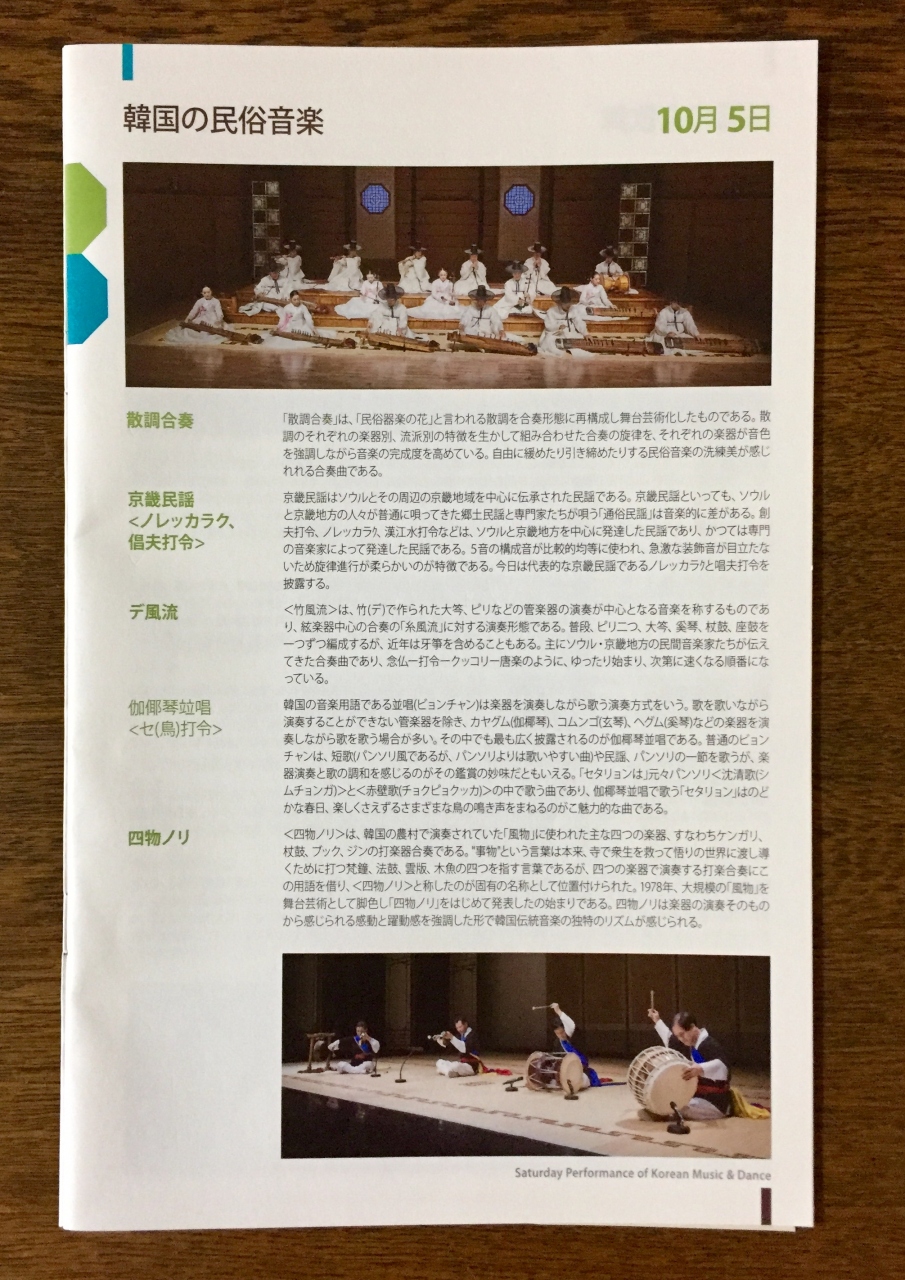 土曜日の午後3時から披露されている韓国国楽の公演です。これまで土曜日に訪韓することが無かったのですが、今回初めて観賞するチャンスが巡って来ました。