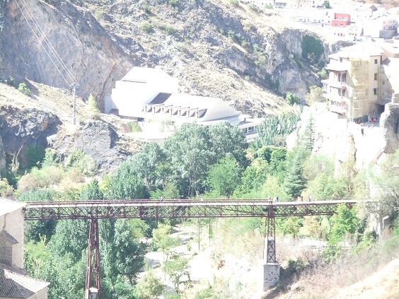ウエカル川に架かる鉄橋です。川に対してかなり高いところに位置しているので、もしこの橋が無かったら両岸を行き来するのは相当に大変なことだと思われます。橋上からの景色は見事なもので宙吊りの家などもよく見えるのですが、遠方からのサンパブロ橋も絵になります。
