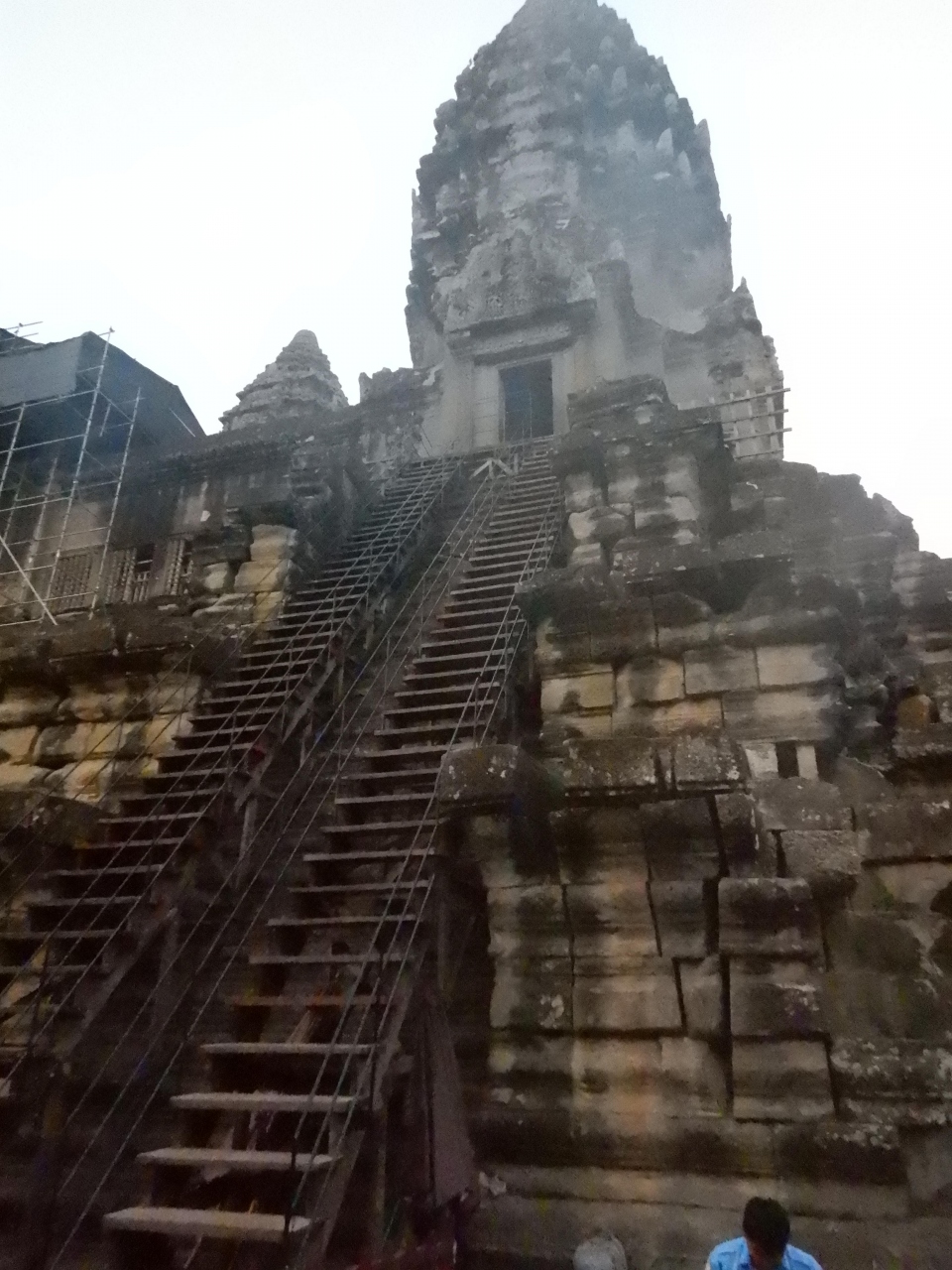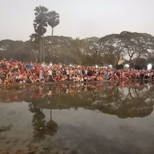 午前4時半にツゥクツゥクでゲストハウスを出発。チケット売り場で7日間チケットを買う。アンコールワットの駐車場から真っ暗の中歩く。池の前でサンライズを見ることにした。サンライズまで1時間ほど待つ。見終わったらアンコールワットに入り、一気に第三回廊を目指す。第三回廊は入場制限を行うので、先に行った方がよいと教えてもらったのでそうした。