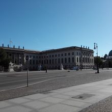 ブランデンブルグ門前、東西に続いている広い通りです。早朝は、車もバスも、もちろん人も殆ど見られない、果てしなく続く通りでした。通り中央には、樹木やショップが点在していました。オープンしたらさぞ賑やかだろうと思いました。東は、フンボルト大学先のシュロス橋までです。