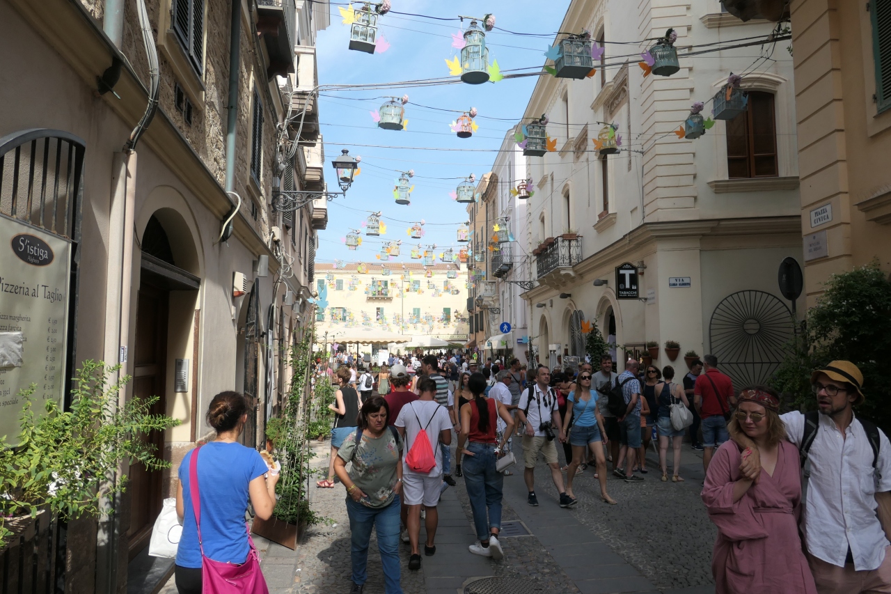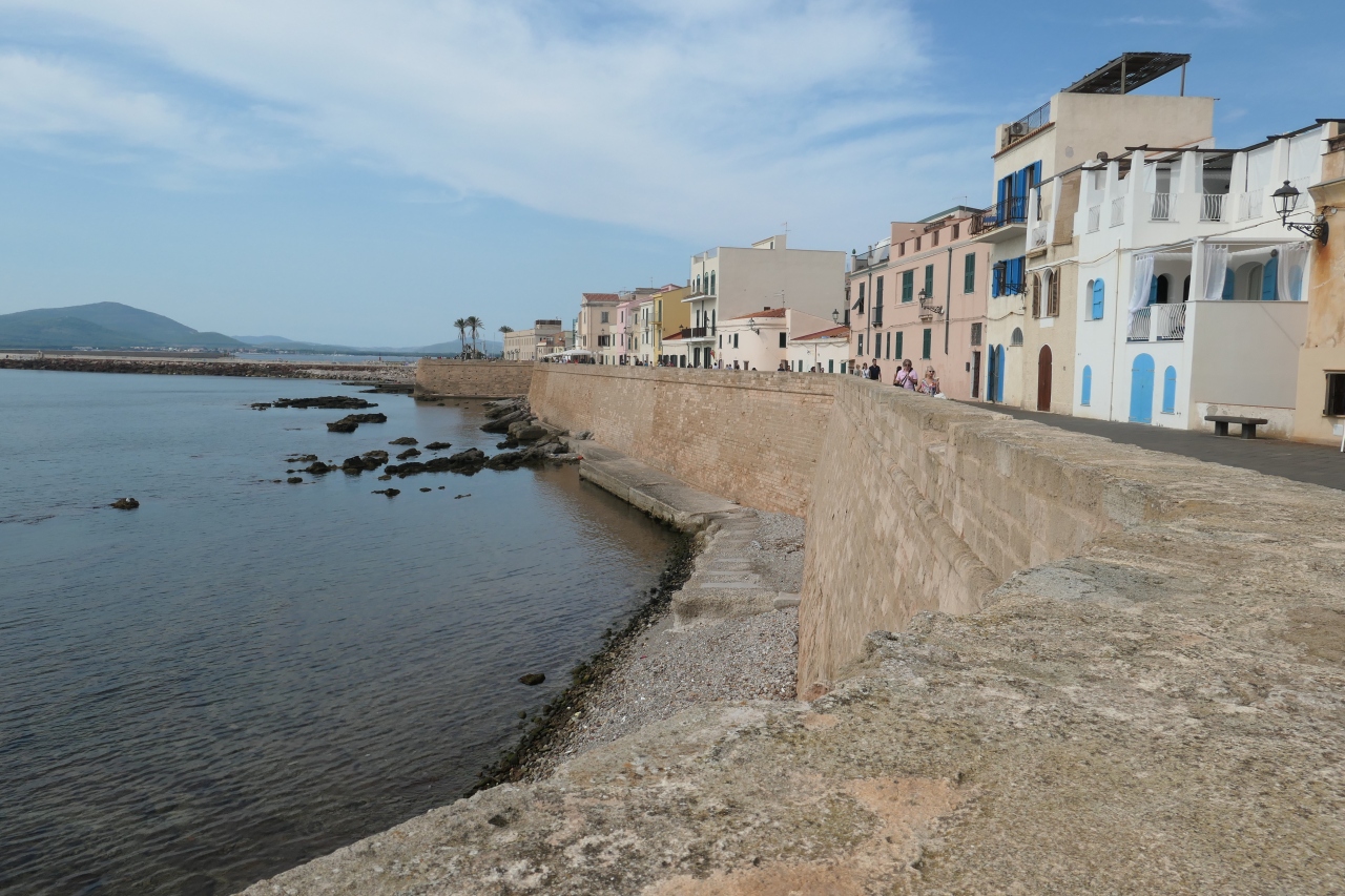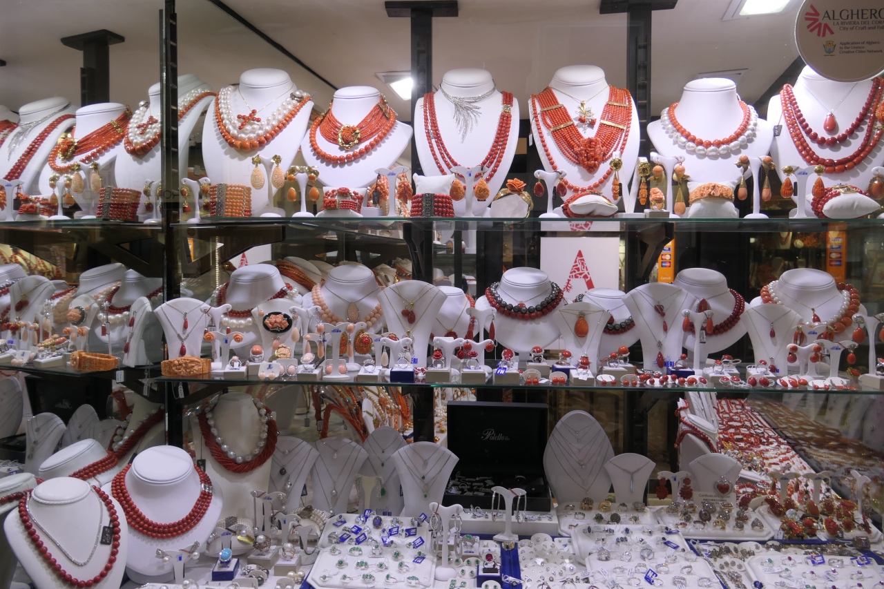 アルゲーロはサルデーニャ島北西部の港町で、中世から続く旧市街には見事な大聖堂もあります。海岸沿いは景色が良く、レストランやお土産店などもある散歩道です。1時間ほどでグルリと廻れる程度で旧市街は広くはありませんが、沢山の観光客で賑わっていました。アルゲーロ付近の海で珊瑚が採れるそうで、旧市街に珊瑚製品を売る多くのお店がありました。色鮮やかでお洒落なデザインの赤珊瑚のネックレスやブレスレットがショーウインドウに展示されていました。珊瑚のお店を見ながら散歩するのも面白いと思います。