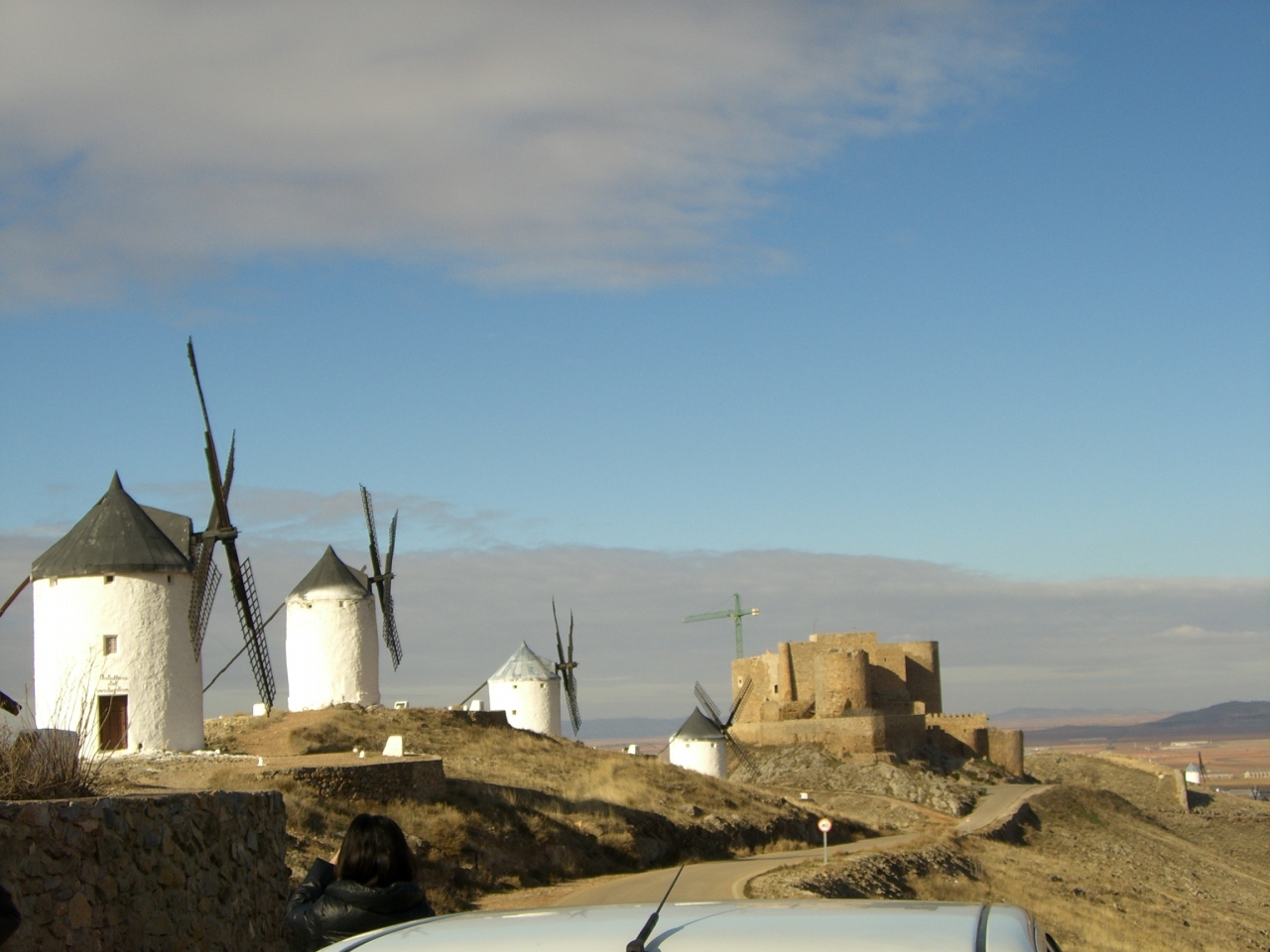 スペインをバスで縦断している途中に、突如丘の上に風車群があらわれます。風車の近くまでいってしまうと、周りの風景も特徴がないので、微妙な感じです。少し離れた場所から風車を見るのが一番よいかもしれません。
