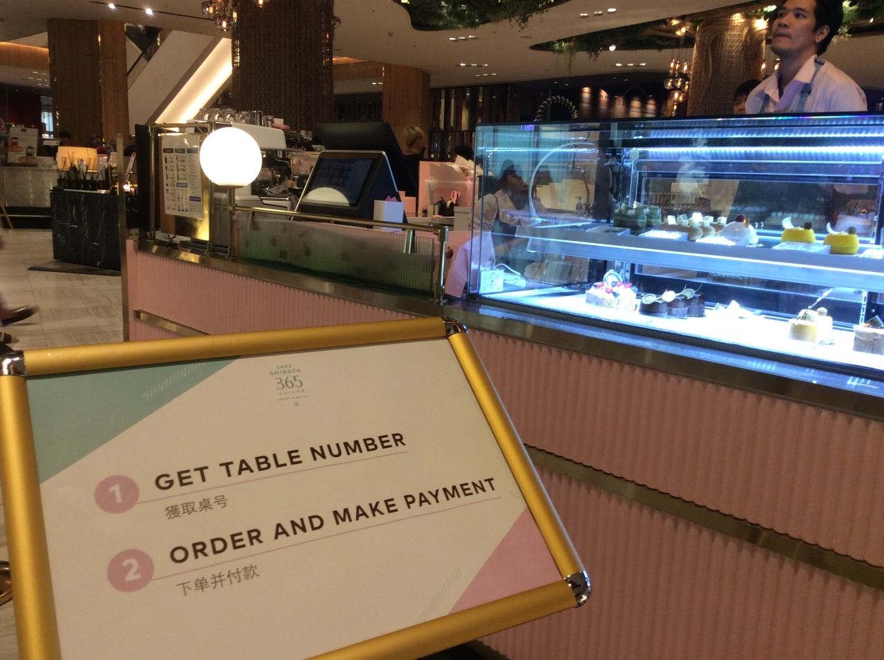 いちいちまずは店内に入って空いてる席のテーブルの上の札を持って行き、それからケーキやお茶を注文してレジで清算、清算終了後に席に運ばれてくるシステムであった。