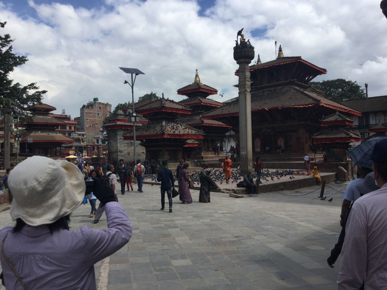 ネパールの寺院には多くの石柱が寺院の前に立っています。