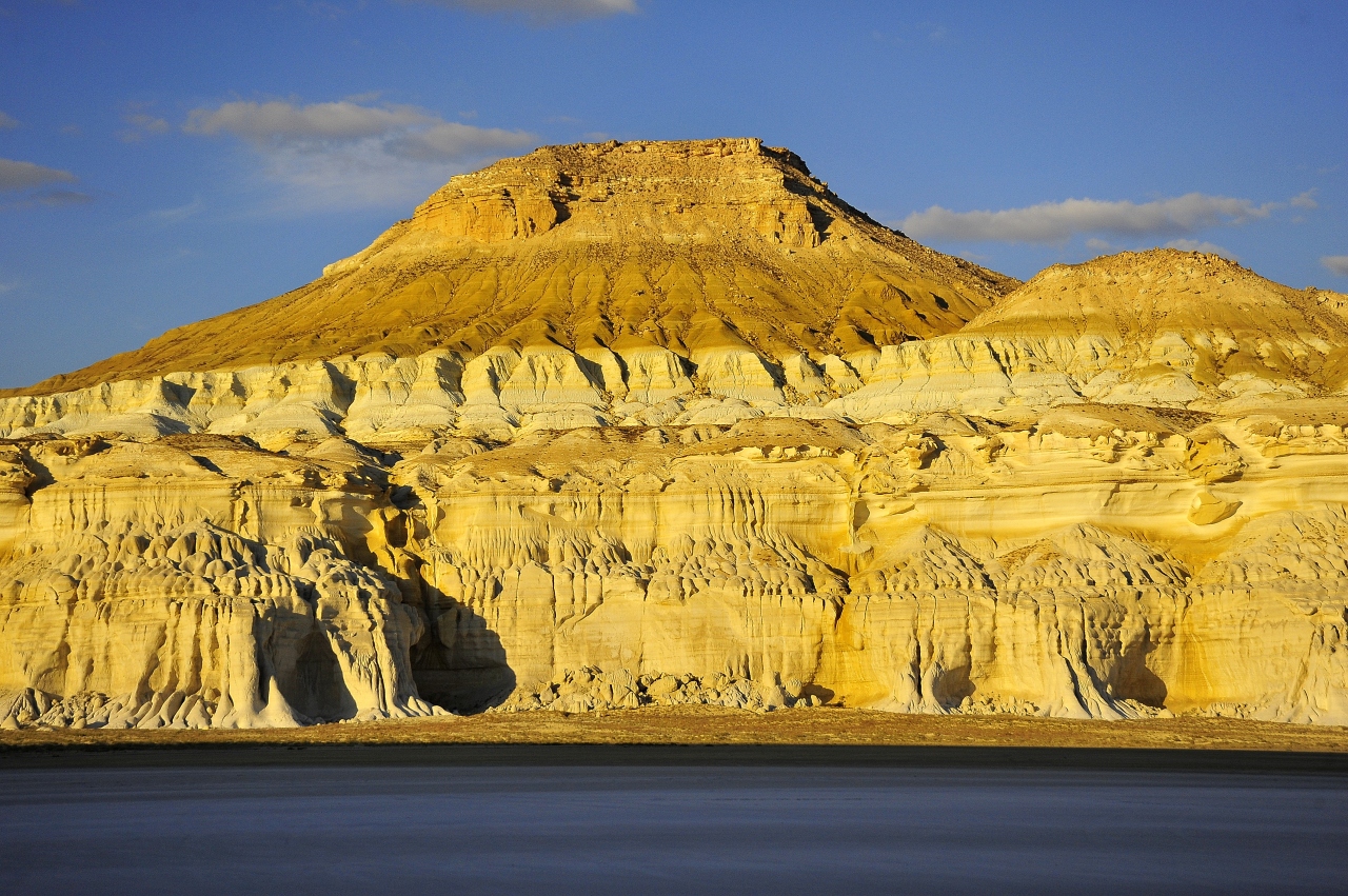 カザフスタンのマンギスタウ州と南の隣国トルクメニスタンの北西部に広がるウスチュルト台地には、太古からの地球の営み、大陸の分裂と再結合、海の封じ込めと塩湖化、海底の隆起と侵食等々に因って形成された信じがたい景観が広がっています。