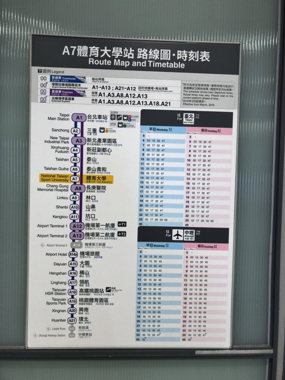 体育大学駅へは台北駅から桃園空港へ行く地下鉄路線の