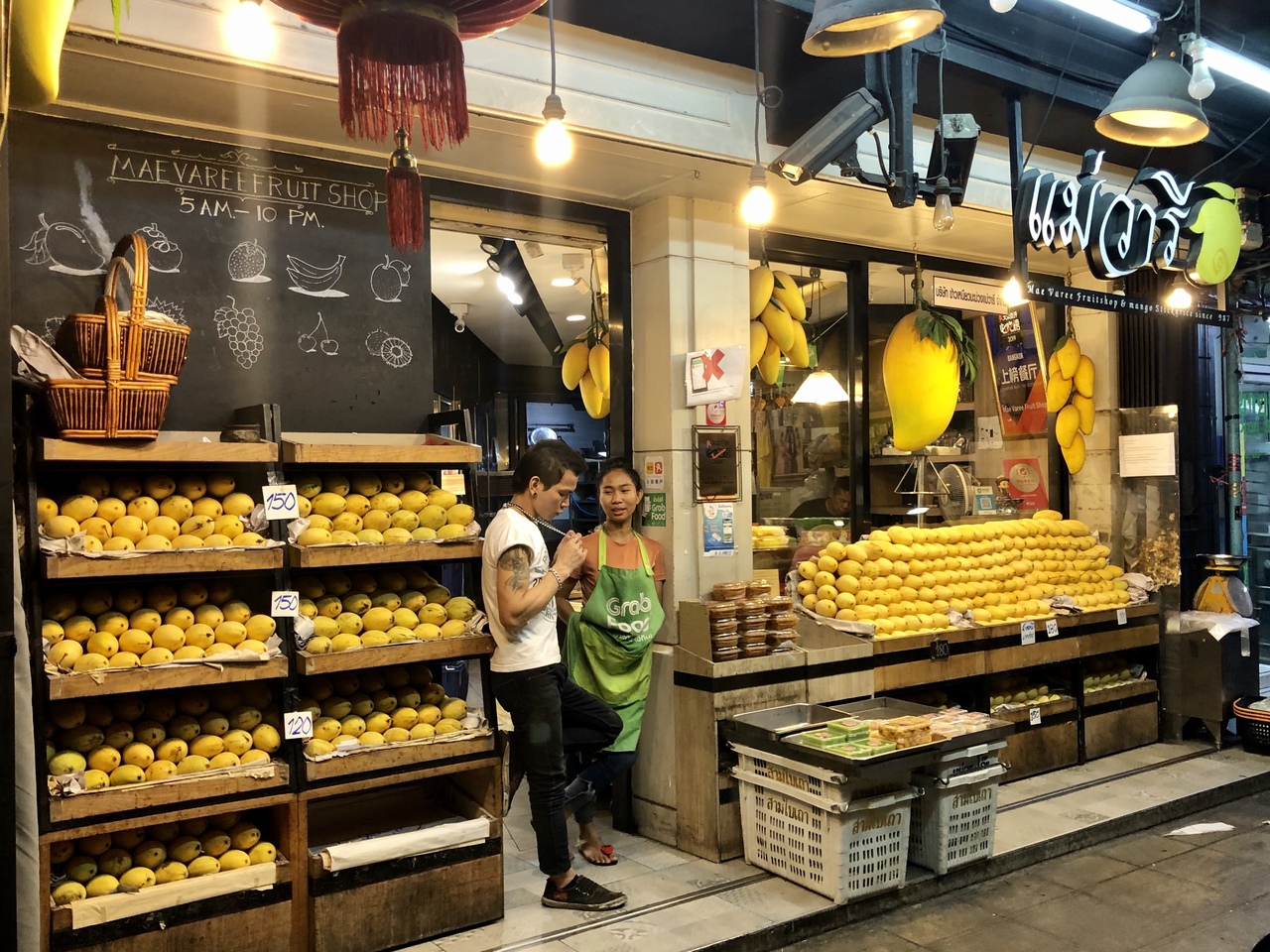 トンロー駅から歩いて2分ほどのところにある、持ち帰り専門のマンゴー屋さん「メーワリー」新鮮なマンゴーを取り扱ってます。