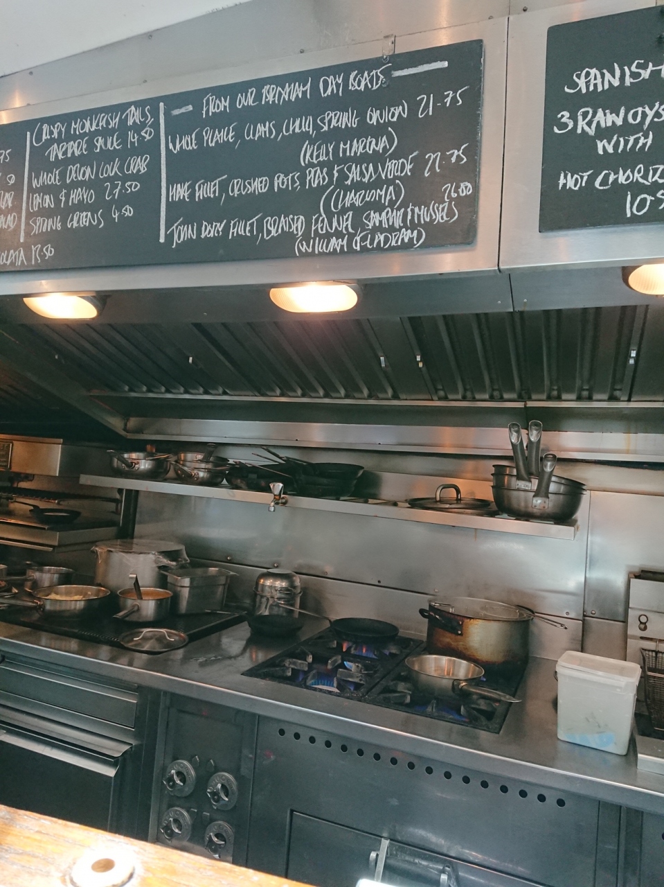 いくつかある店舗の内、バラマーケットのライト・ブラザーズへ。12時30分に到着するとほぼ満席でした。事前に予約をしていたので、案内されたのはオープンキッチンの見える特等席!シェフが料理している姿が見れて楽しかったです。料理は、蟹、帆立、海老と注文しましたが、どれも美味しかったです。