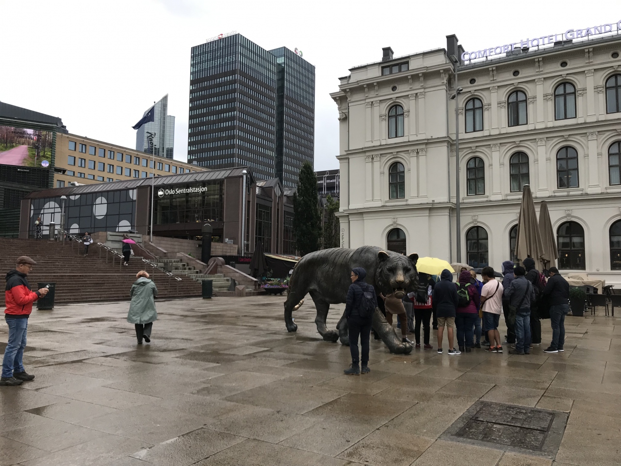 広場には虎の像が設置されていて、ランドマーク的な存在になっていました。かなり大きな像で迫力があるものでした。オスロに来たら、是非立ち寄りたい記念撮影スポットだと思います。