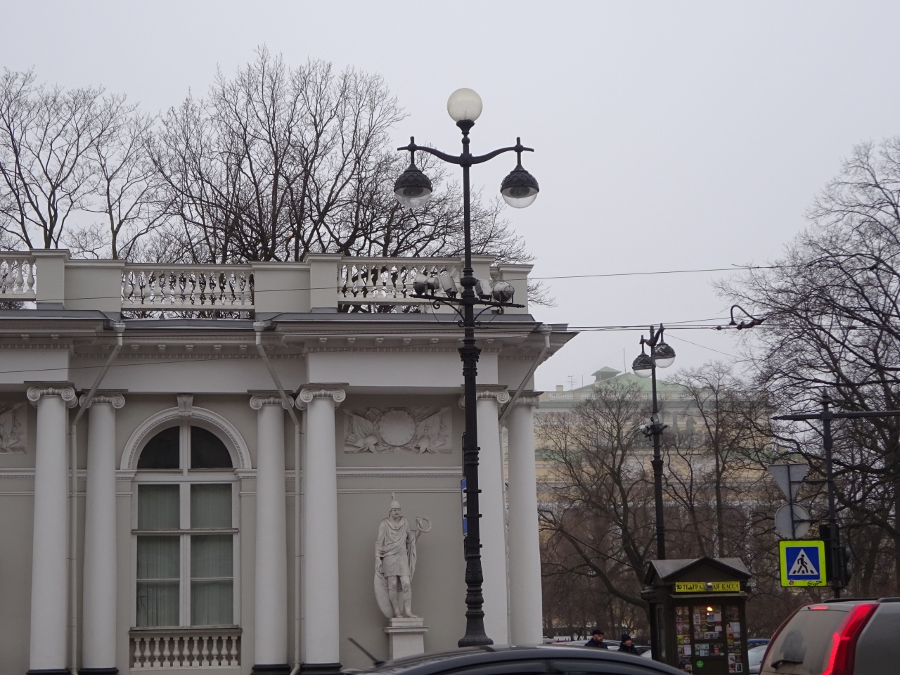 ネフスキー大通り沿いにある、アニチコフ宮殿です。姿・形が美しく、すぐに何か普通の建物では無いなと分かりました。一番最初に、西側から向かっていったので図書館、公園、宮殿と美しい様子が次々と堪能できました。