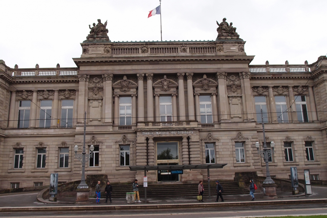 トラムのRepublique停留所からすぐのところにある円形の大きな広場です。周囲をライン宮殿、国立劇場、国立図書館などの堂々とした建物が囲んでいます。中心には警告の碑という母と2人の息子の像があります。息子の一人はドイツのために戦死し、もう一人はフランスのために戦死したことを物語っているそうです。