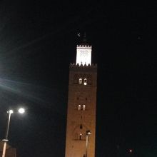 マラケシュ・メナラ空港からエアポートバス19番に乗り、ジャマ・エル・フナ広場のバス停に下りた場所の向かいにある塔です。旧市街では目立つ建物です。夜になるとライトアップが綺麗です。この通りに夜になるとカラフルな観光馬車もとまっています。