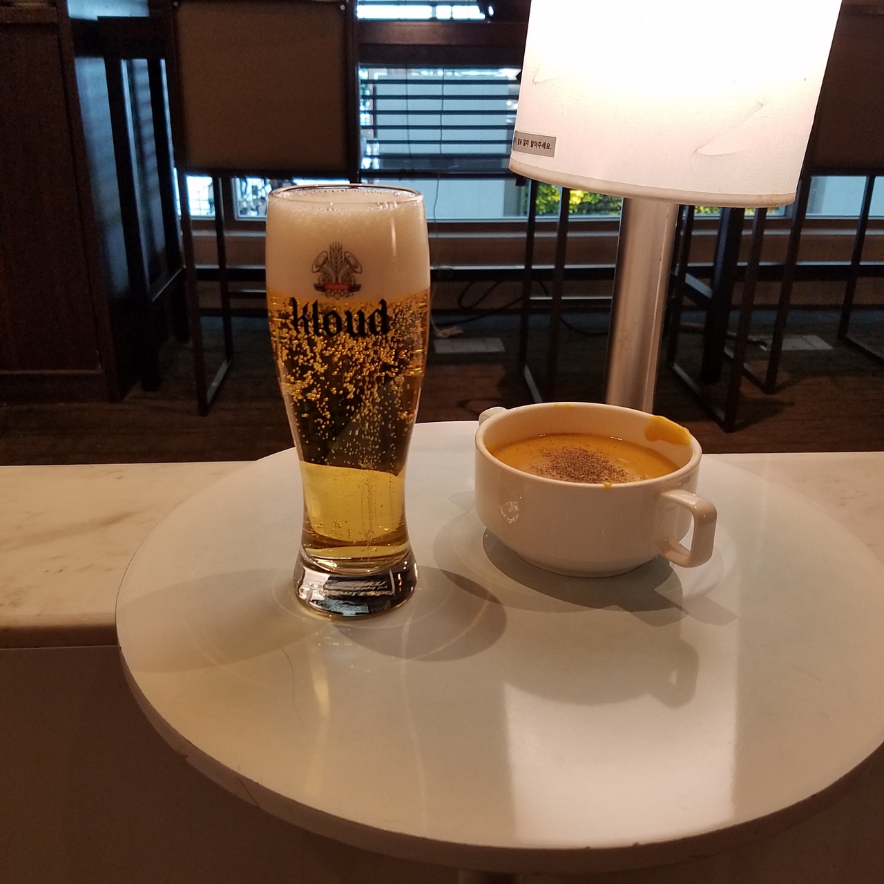 アシアナ航空のラウンジ、matinaラウンジと比べるとホットミールが充実しており、味も美味しかったです。アルコールの種類が少ないのは残念。