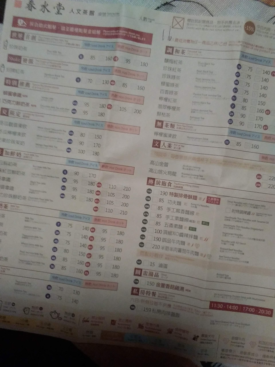 買い物ついでに気軽に利用でき、1人でも入りやすい(女性の1人利用も結構居ました) 注文はテーブルにあるメニュー用紙に記入(チェック)して、先にお支払 タピオカミルクティーが有名ですがそれ以外を注文している人が多かったな~