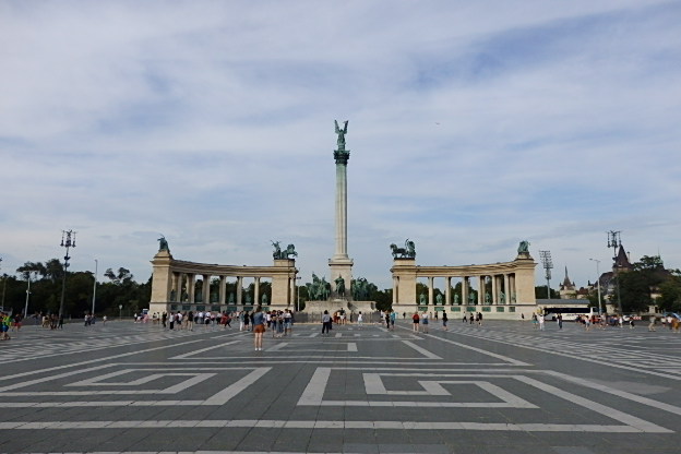 黄色の地下鉄M1「Hősök Tere(英雄広場)」下車すぐです。アンドラーシ通りという広い通りの突き当りにあり、広場の両サイドにはブダベスト西洋美術館とブダベスト現代美術館があります。半円形の石造りのモニュメントがあります。また、広い公園に隣接していて、散歩するにもいい所でしょう。