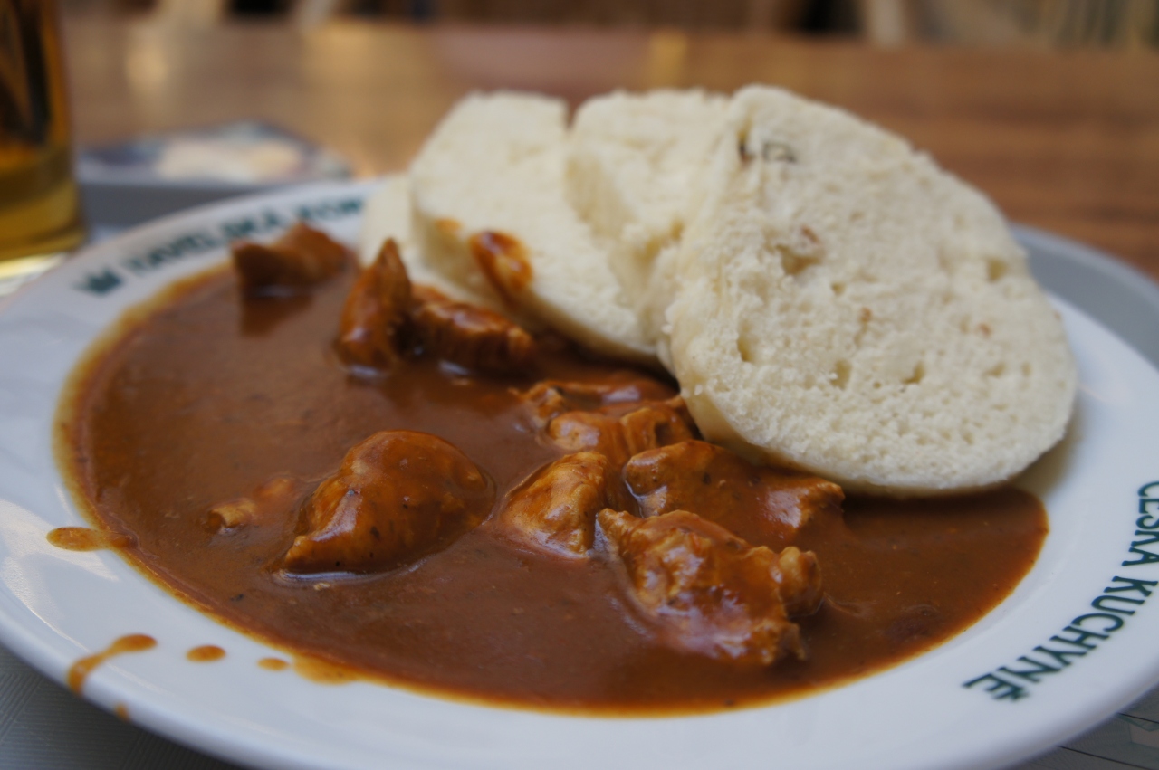 ビール(小さい方のサイズ)とグラーシュ&蒸しパンで159czkでした。