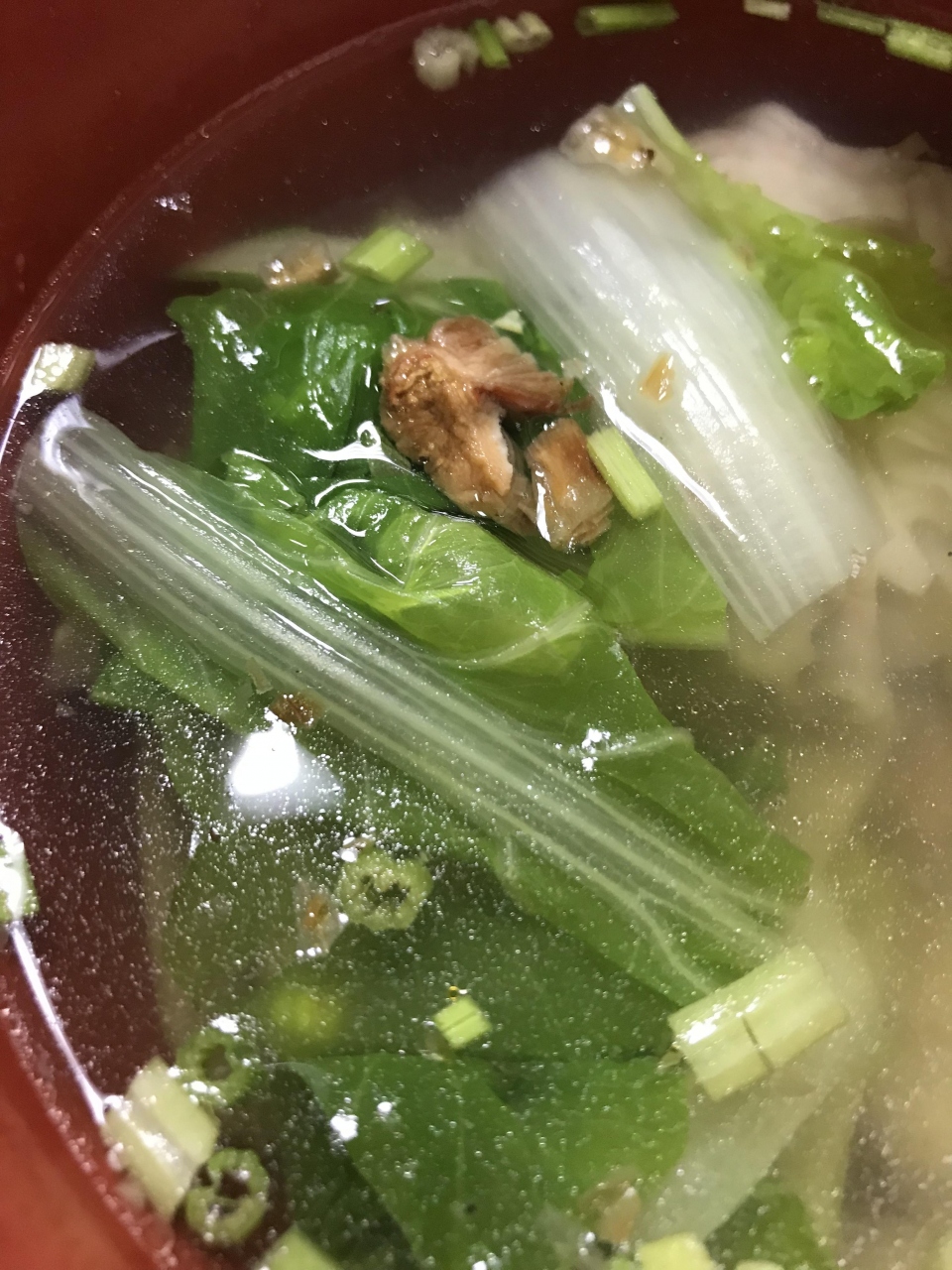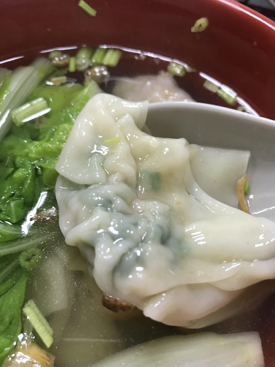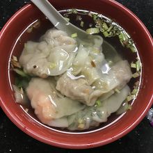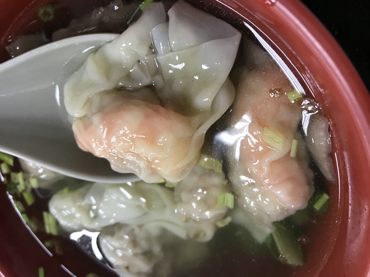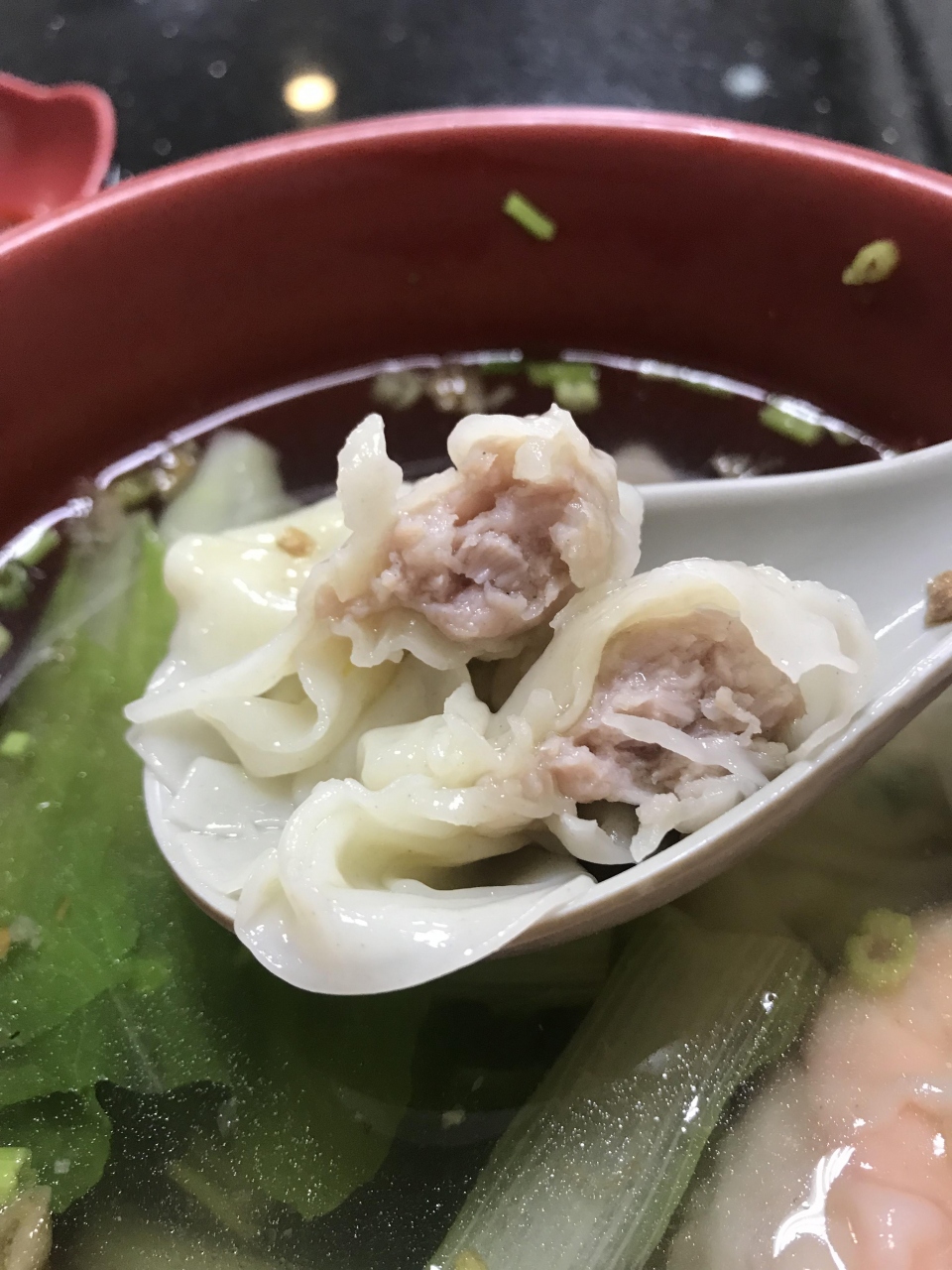 蝦ワンタン、普通の挽肉ワンタン、ニラワンタンの三種類が3つづつ入ってます