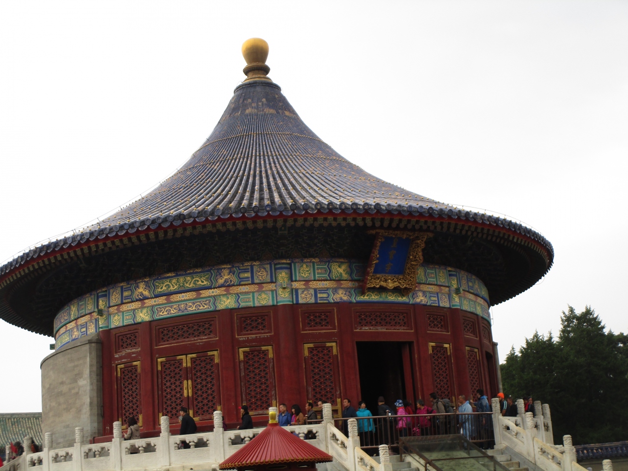 天壇公園の中にある円形の宮殿です。ぐるっと取り囲むように見学できます。青みがかった屋根の瓦が独特の美しいカーブを描いている形状が印象に残りました。祈念殿ほどの大きさはありませんが、コンパクトにまとまった綺麗な建物だと思いました。