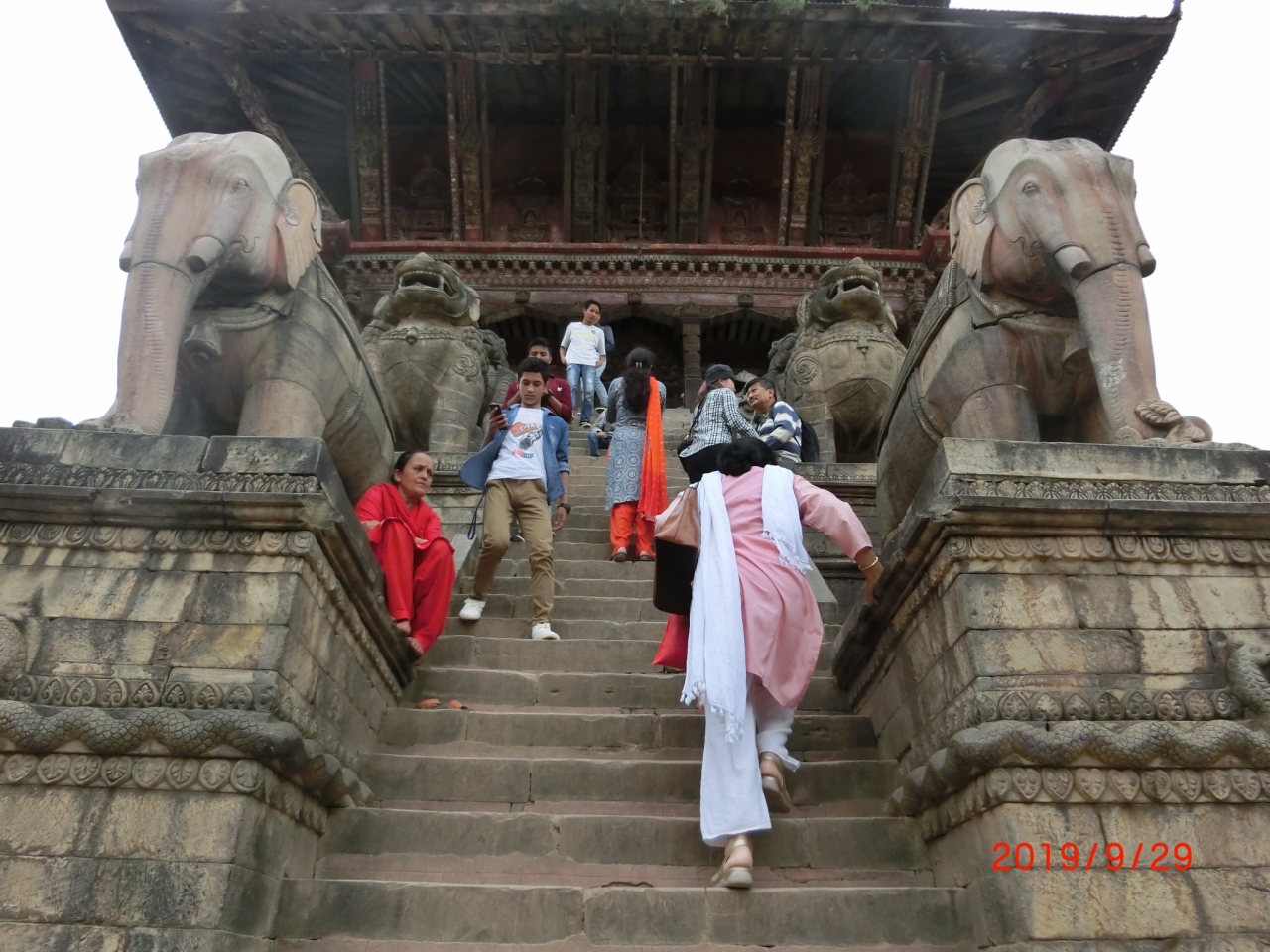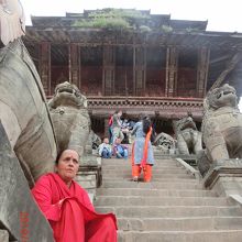 ニャタポラ寺院の石段を上がって行くと