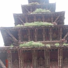 ニャタポラ寺院の5層の屋根には草が生えていた。