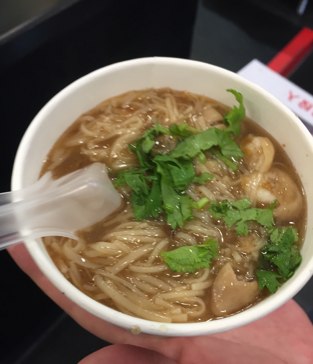 出汁の効いたアツアツとろっとろのそうめん。小55元。モツが入っていてパクチーは入れるかどうか聞いてくれます。みんなお店の前で立って食べてました。小さなスプーンでは食べにくいです。チリソースとガーリックとお酢が置いてあって味変しながら食べました。美味しかったです!