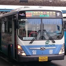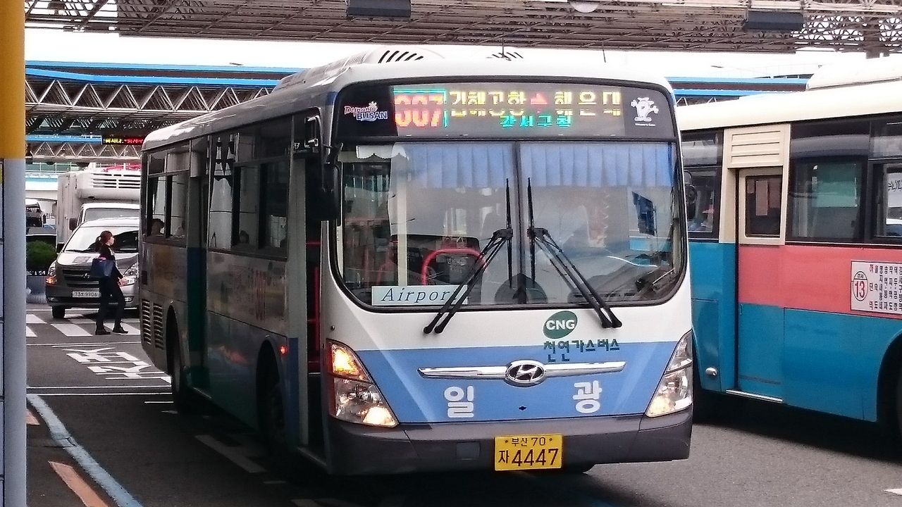釜山には地下鉄海岸線3路線ありますが、全ての地域を網羅しているわけではなく、また、海雲台から釜山駅やチャガルチといったところへ地下鉄で移動すると乗り換えが必須となります。釜山を含む韓国のバスは日本のバスに比べて長い距離を走り、しかも均一運賃。釜山では網の目のように走っているので、使いこなせればかなり便利。釜山のバスは、赤い車体の座席バス、青い車体の一般バス、住宅地を回るミニバスのマウルバスの三種類。停留所、時刻表、案内放送(最近、バスの前面行先表示は日本語も出るバスがある)が韓国語しかないのでこなり使いづらい。とはいえ1003番の座席バスは、海雲台の市街地(正確には「機張」が始発)からセンタムシティ、広安駅、釜山駅を通り、南浦洞(正確には「釜山大病院」が終点)まで、釜山市内を縦横無尽に移動できる路線、朝や夕方を避ければ30~40分くらいで移動でき、しかも地下鉄のように乗り換えが無いので便利。海雲台に泊まっていましたが、チャガルチ市場などへの観光に使いました。