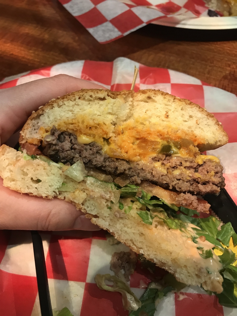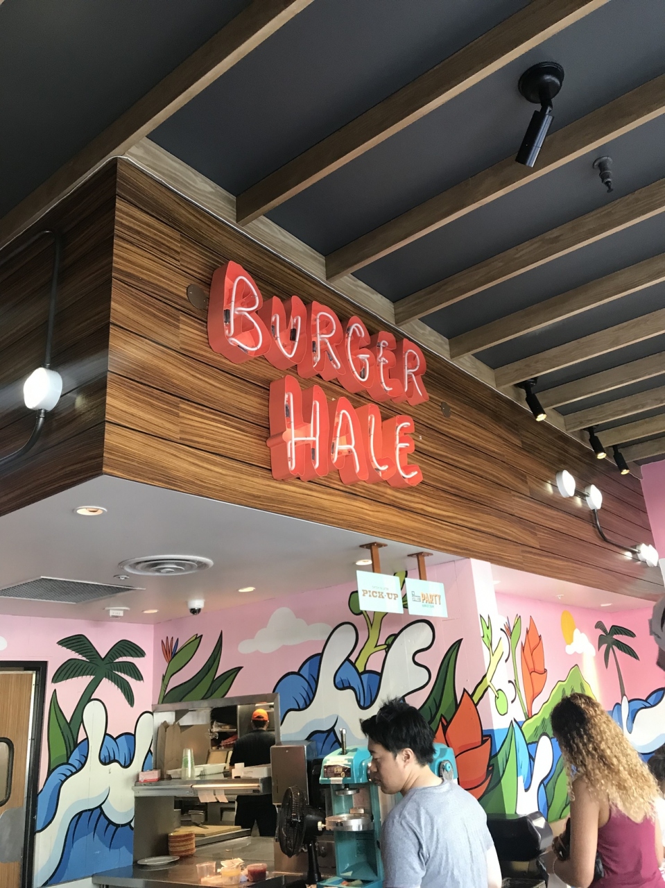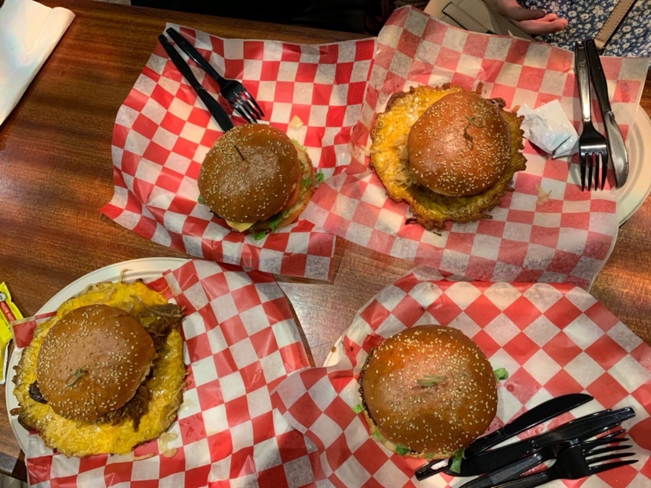 インターナショナルマーケットの1階、クヒオ通り側にあるザ・ストリートというフードコートにありますが、こちらのお店はクヒオ通りに面した外になります。テラス席もありますが暑いのでフードコート内で食べました。焼いたチーズが入っているバーガーとアボカドが入ってる物を頼みました。バーガーはとても大きく顔ほどの大きさがありますがサイドメニューは注文しなかったので一人1個ペロッと完食でした。