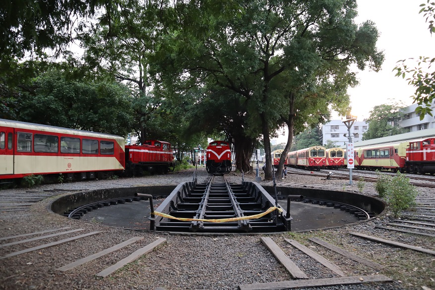 中は公園のようにきれいに整備されていて、以前使われていた車両(園区内にそのままの姿で展示されている)や、今使われている車庫に入っている列車を、間近で見られるようになっています。園区内には転車台があり、実際に毎日の車庫への出入りに使われているようでした。
