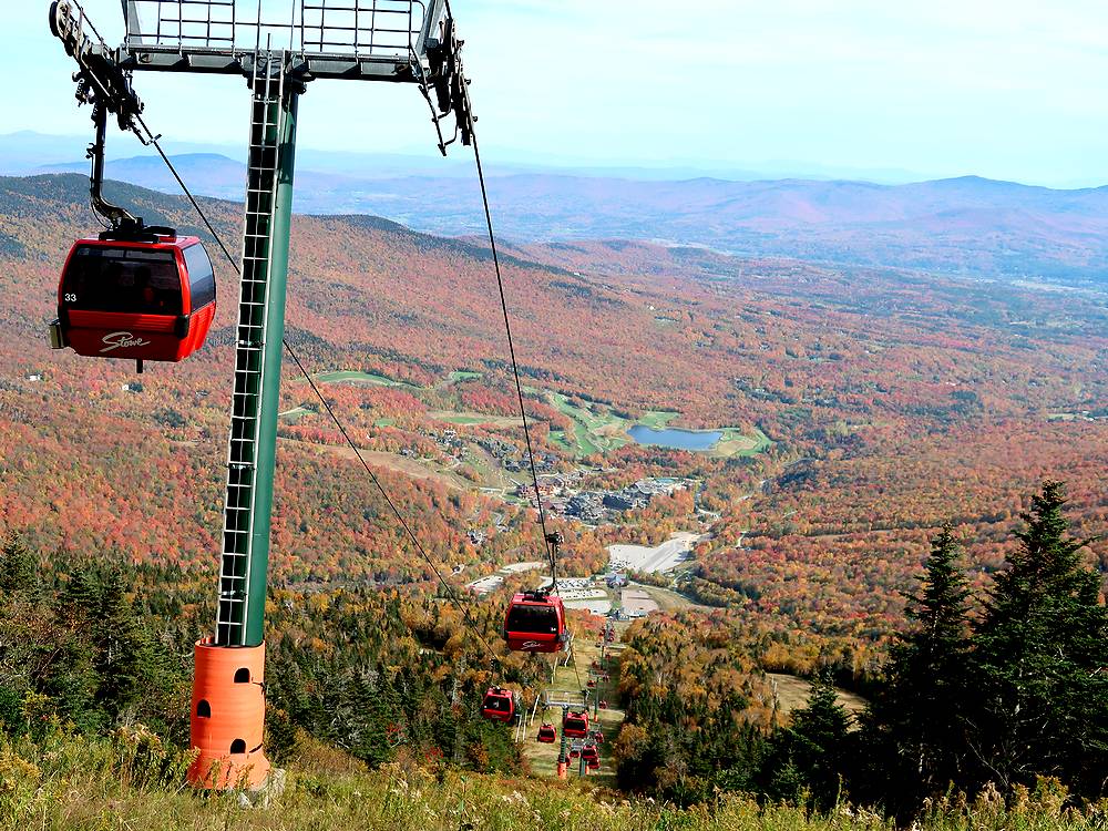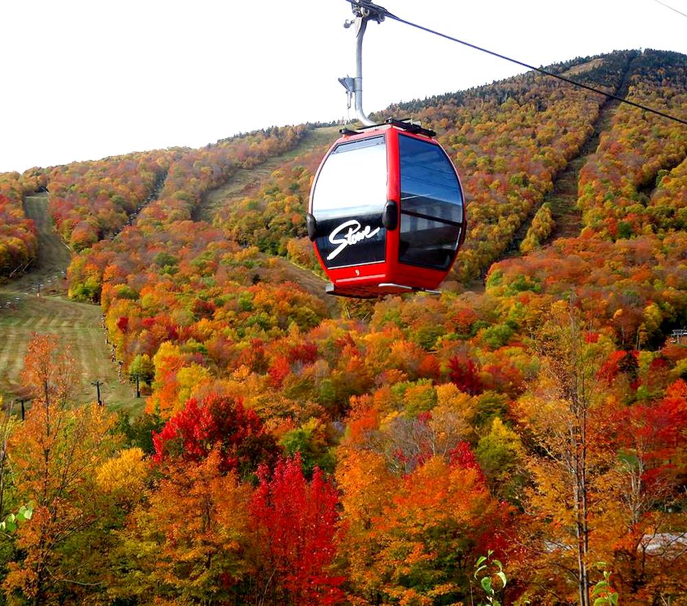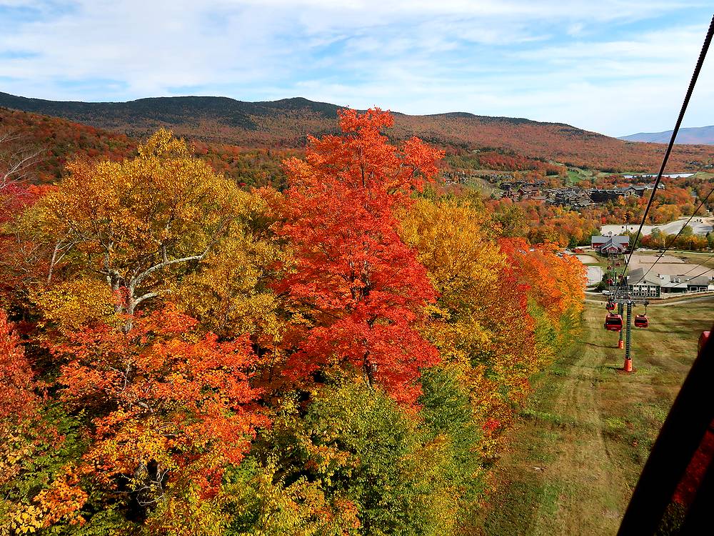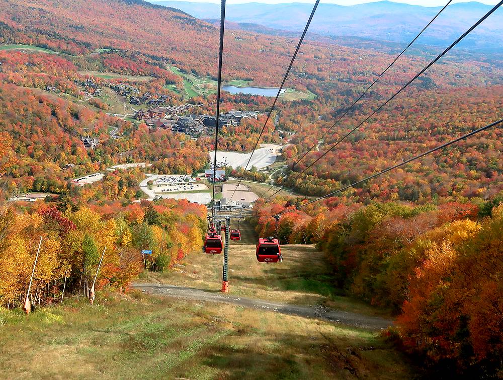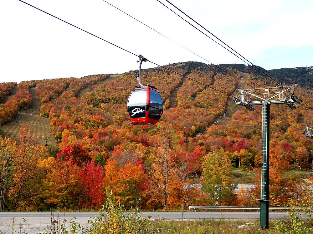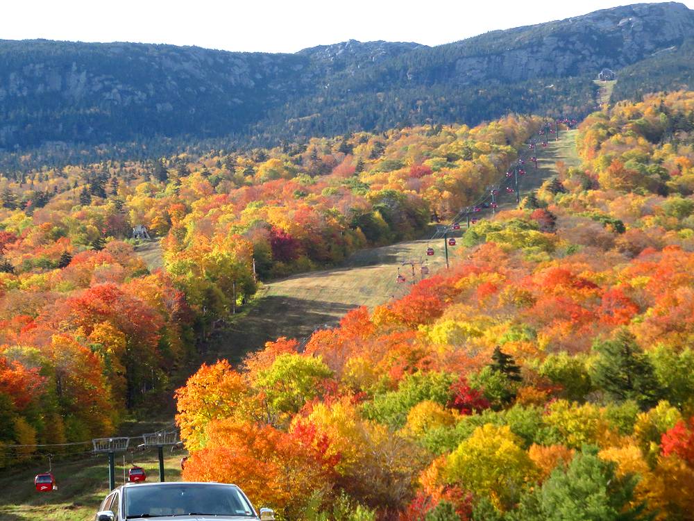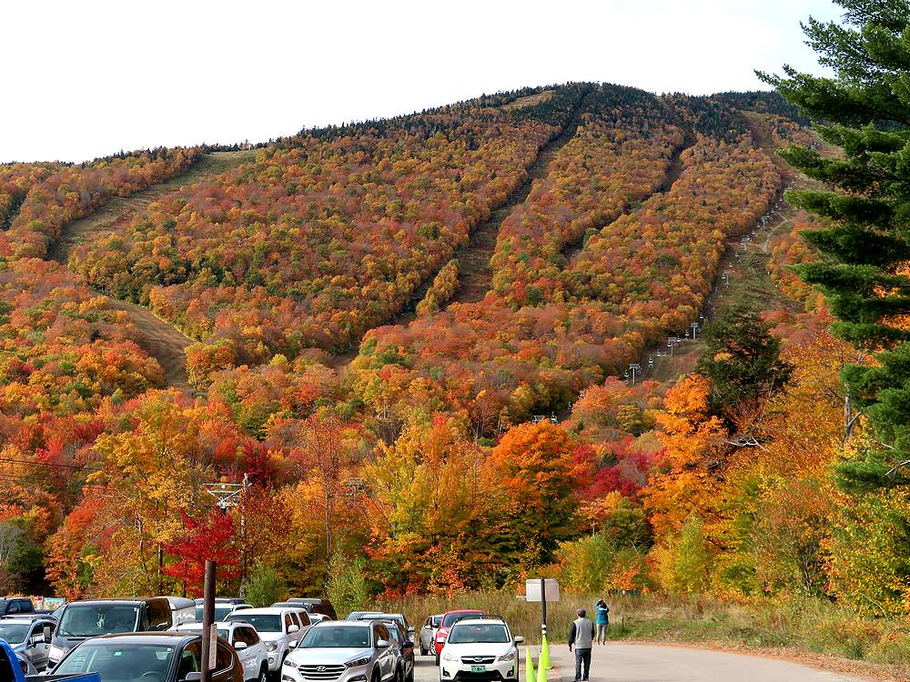 ストウは、映画サウントオブミュージックの主人公・マリアとトラップ一家が移り住んだ地として有名です。このリゾートは、そのストウの町の西にあるマンスフィールド山麓に広がるスキーリゾートです。ストウはバーモント州の屈指の紅葉の名所ということは知っていたのですが、ストウの中でもこのリゾートの紅葉は特に素晴らしく、とても見ごたえがありました。テレキャビンで山頂まで上ることができ、そこからのリゾート全体の眺めもすばらしかったです。もっとも、その料金は一人31ドルとかなり高価でびっくりしました。リゾートの中を通る108号線をさらに西に走ると、峠越えの道になりますが、この沿道沿いの紅葉も素晴らしいものでした。