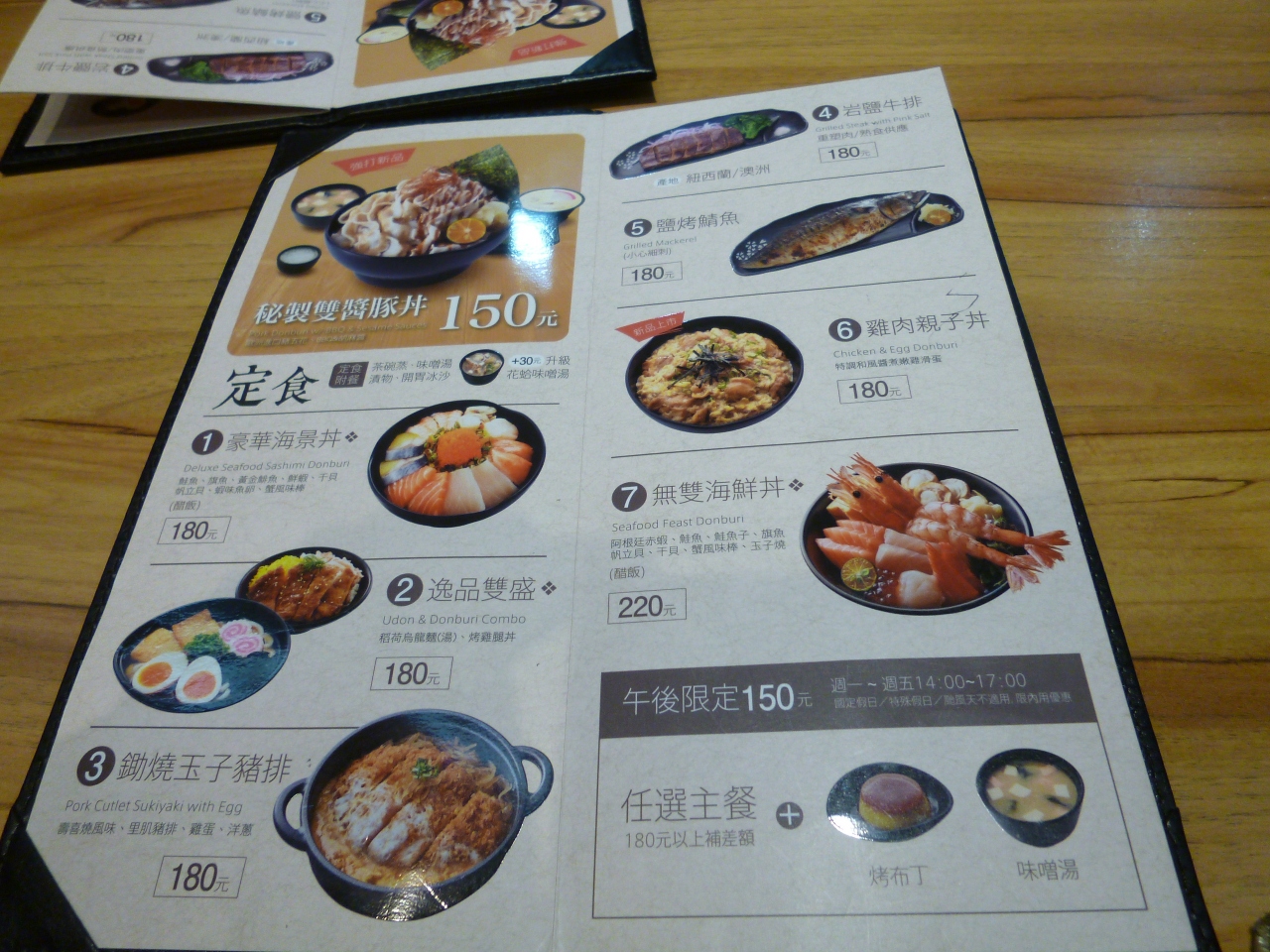 私は豪華海景丼(180元)、友人はステーキ(180元)を注文しました。