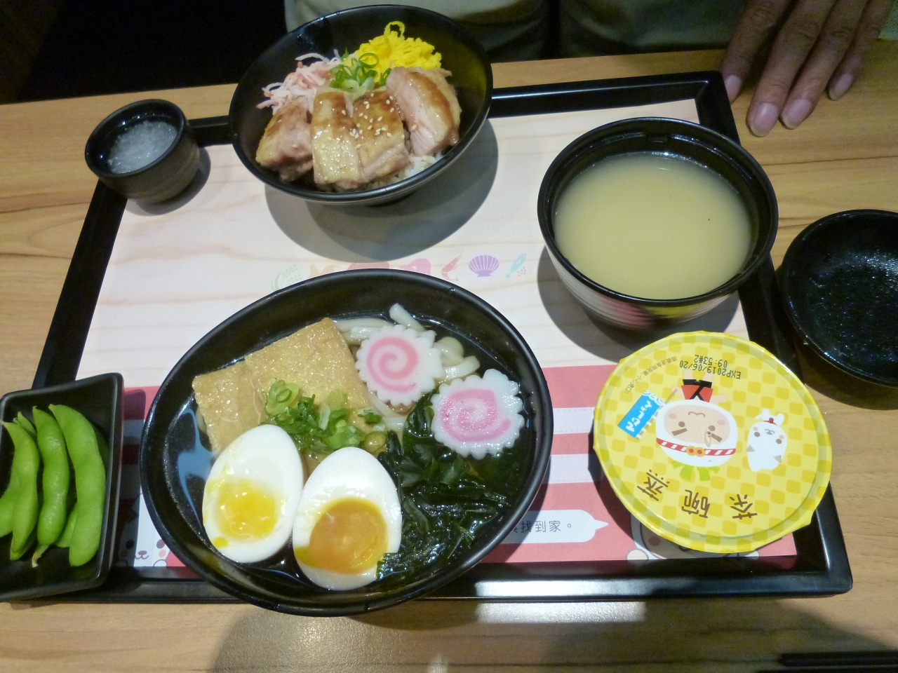 定食には、味噌汁、茶碗蒸し、枝豆が付いていました。