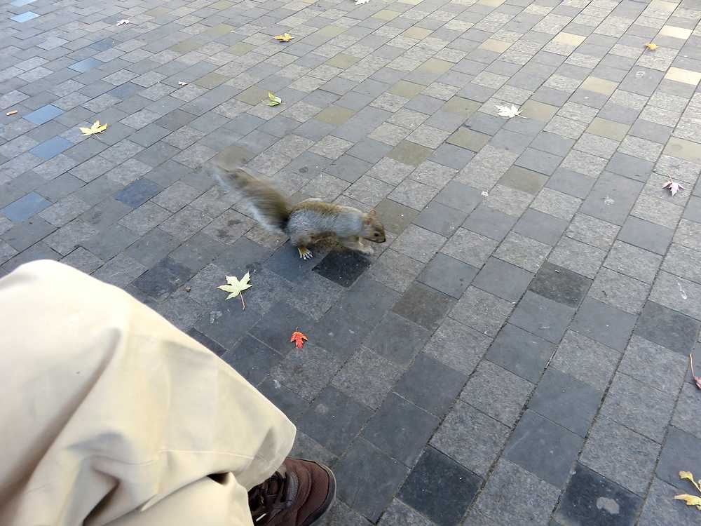 人馴れしたリスに出会える小さな広場