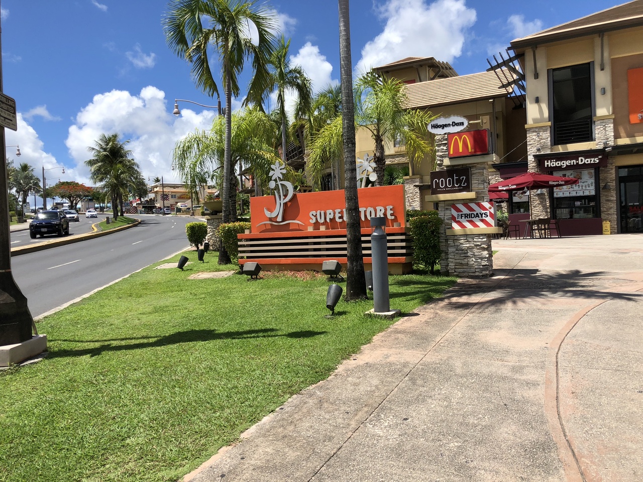 グアムのJPスーパーストアで、子供を連れてショッピング。