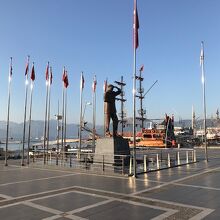 トルコのリゾート地のマルマリス の海岸沿いの太い道路が交わる場所にある公園に建っています。トルコ共和国建国の父のアタチュルク像で、トルコ各地で銅像が建っています。手をかざしてどこか遠くを見ている姿で、こんな姿の銅像は見たことありませんでした。周りは国旗で囲まれています。