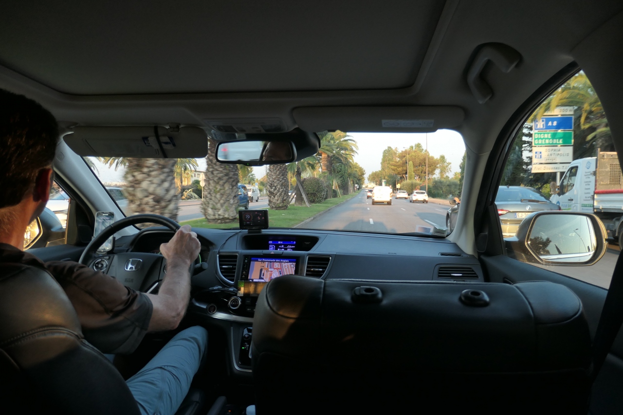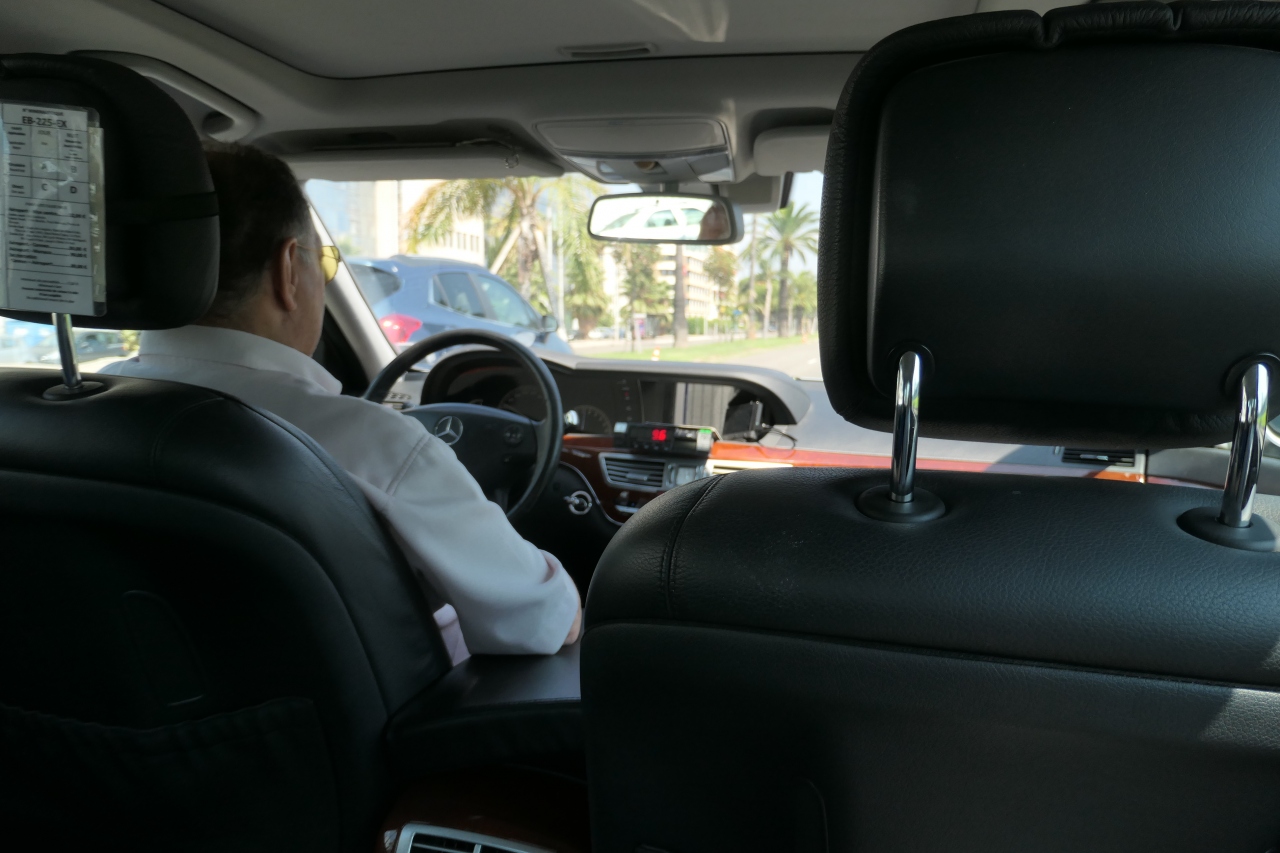 ニースの町中で流しのタクシーは殆ど見かけませんでした。タクシースタンドでもタクシーが待機しているのも殆ど無かったと思います。ニースでタクシーを使う場合、ホテルで呼んでもらうのが一般的な利用法で、日本国内とは様子が大分異なりました。我々の場合、市内から空港への移動では前夜にホテルで予約をしてタクシーを利用しました。