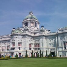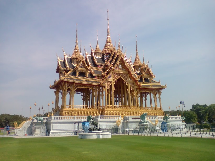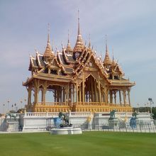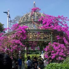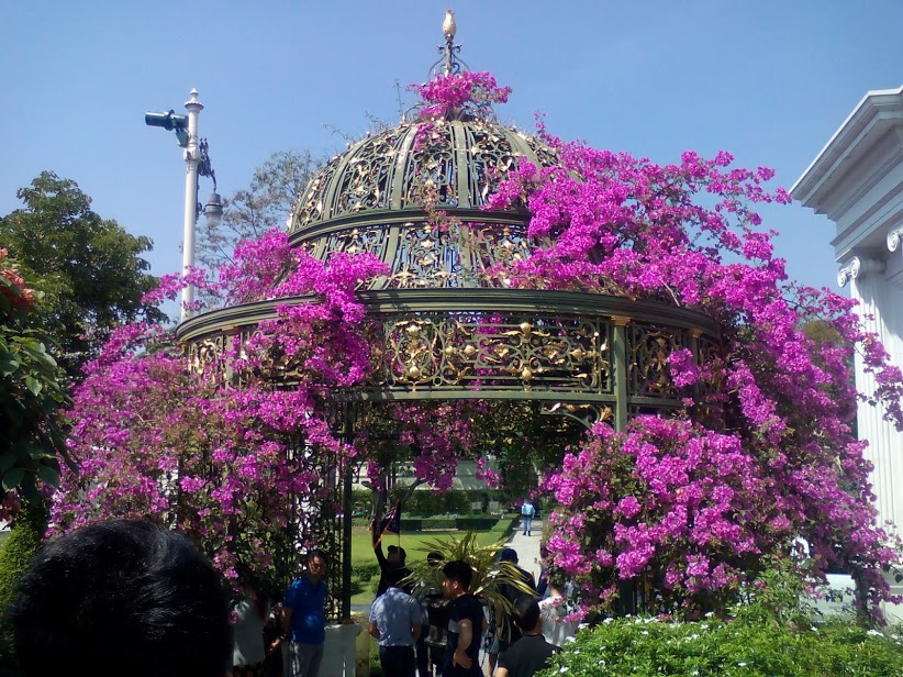 紫色の花が咲き乱れた奥にチケット売り場がありそこで中休み。敷地の反対側にある寺院の建物を往復してしばしタイと西洋を折衷した不思議な気分が味わえました。
