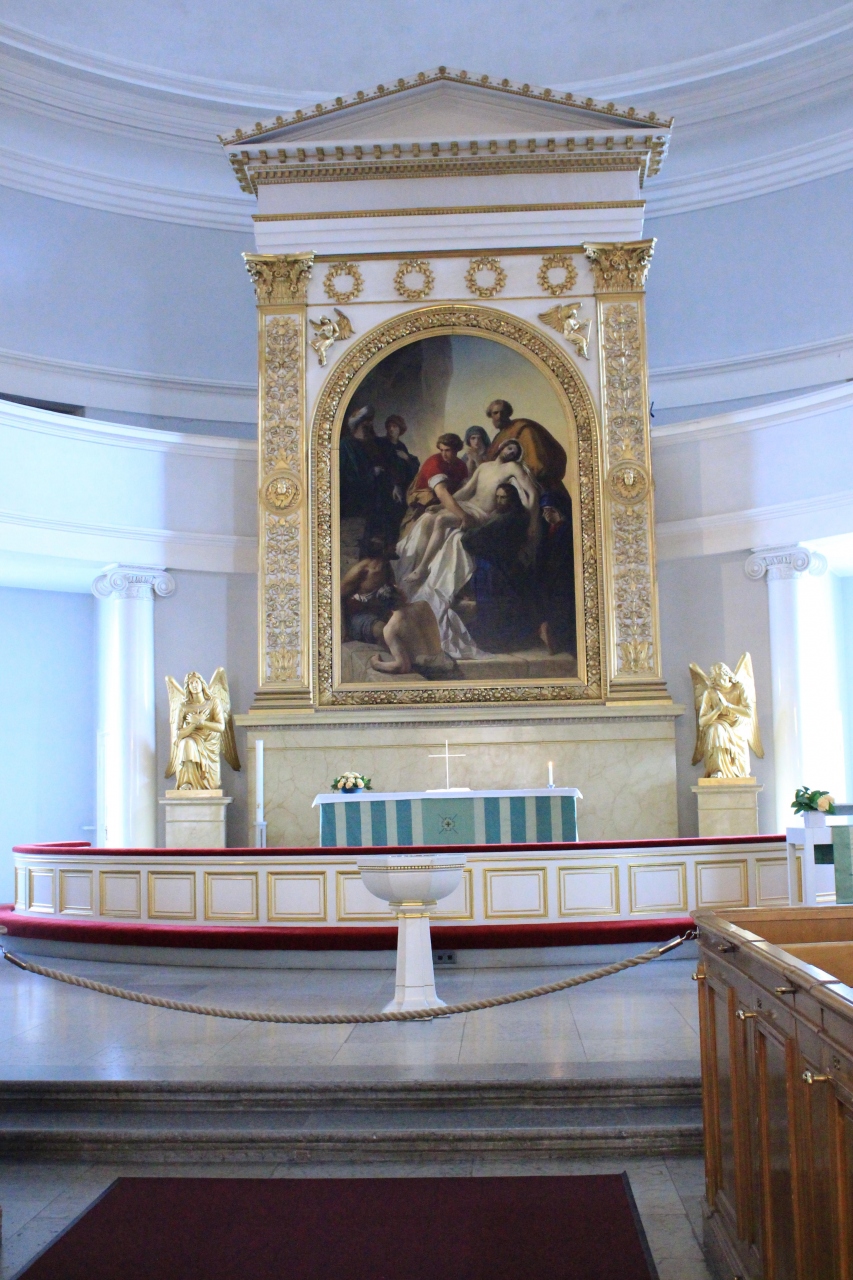内部も白を基調とした美しいデザインでした。大聖堂の近くにはお土産店もあり、日本語が話せるフィンランド人の方がいました。