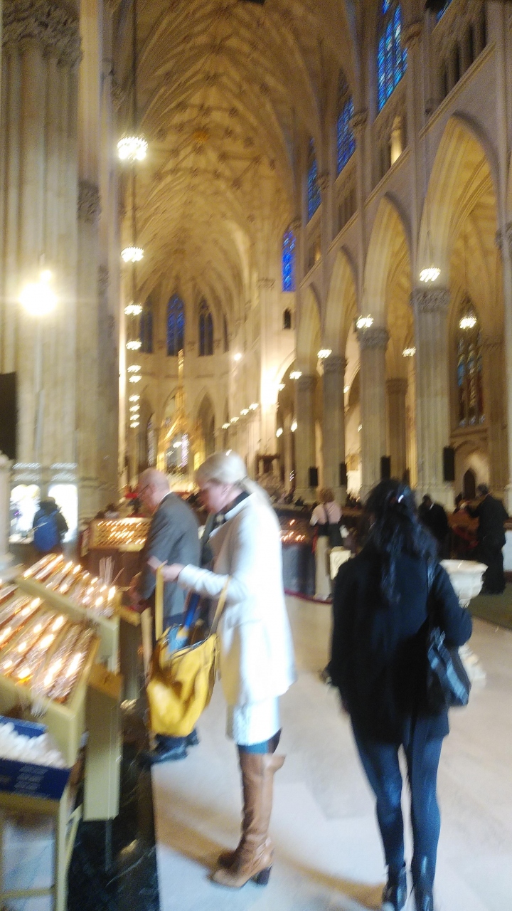 今日は、朝からバンクシーのハンマーボーイを探し、コロンバスサークル、トランプタワーを見学して通りがかりにあったので寄ってみました。この建物は50年の歳月をかけて完成したそうで、中に入ってみると観光客なのか信者なのかわかりませんが、人でいっぱいでした。中世ヨーロッパの建築様式で「ゴシック・リバイバル様式」が観光客を惹きつけているそうです。建物の外観も特徴的で内部も窓も大きく多くのステンドグラスがあり奇麗でしたが、信者ではないので興味を引くことはありませんでした。