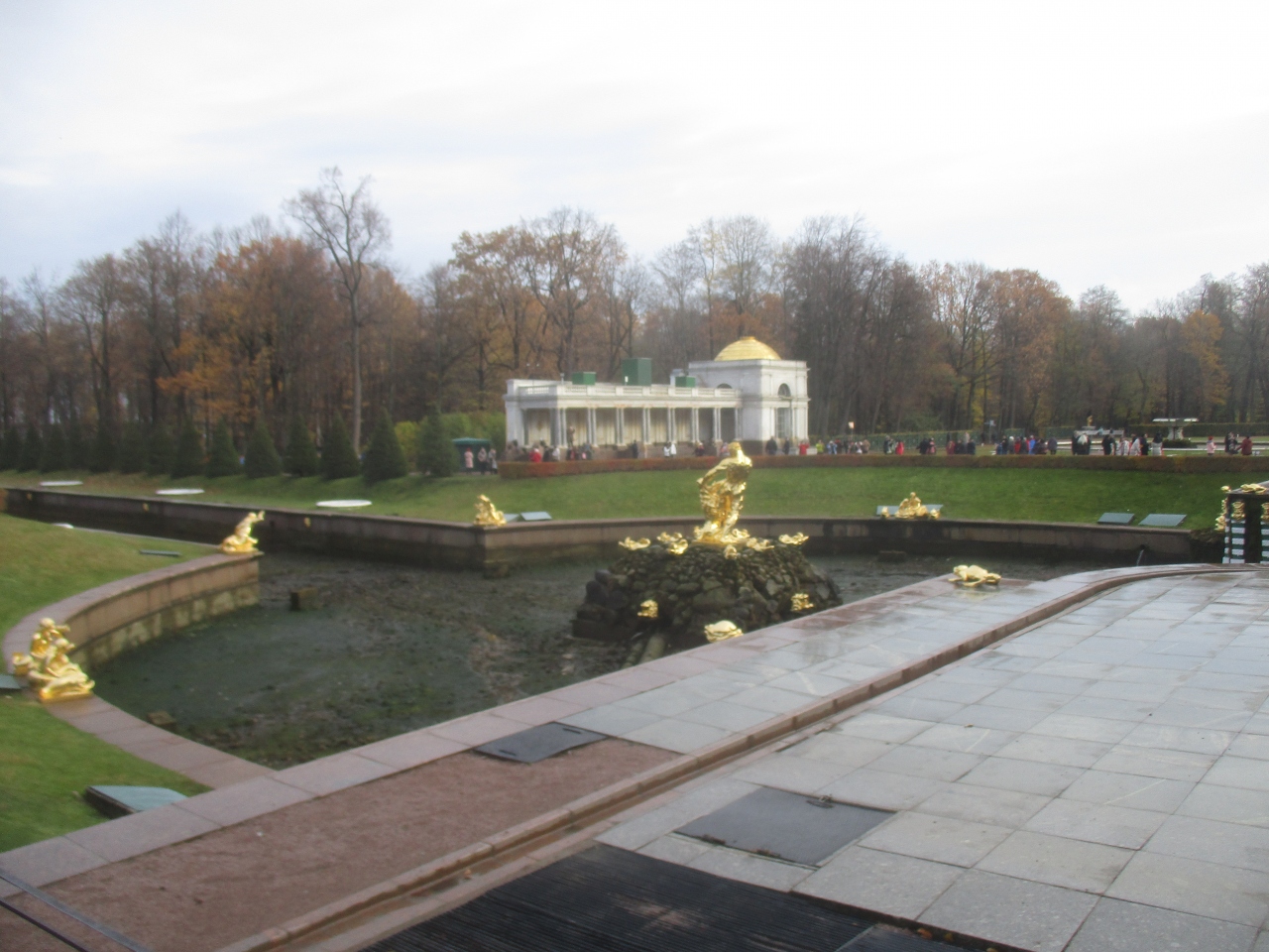 ペテルゴフ宮殿の前にある有名な噴水の中心にサムソンの像は位置します。ピョートル大帝の時代にもあったそうですが、それは錫に金箔でできていたそうです。第二次世界大戦で侵攻してきたドイツ軍によって破壊されましたが、復元されて、さらに、修復されたので非常にきれいな金色の像になりました。金は本物で近くで見ると驚くほどピカピカしていました。
