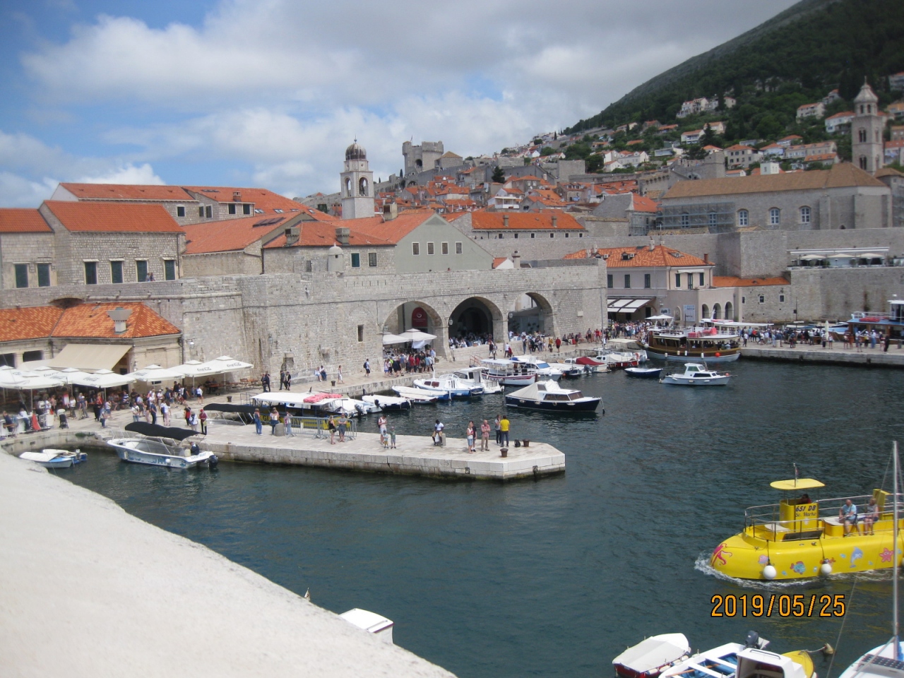 観光遊覧船や潜水艦みたいな船が色々と狭い港から出ています。