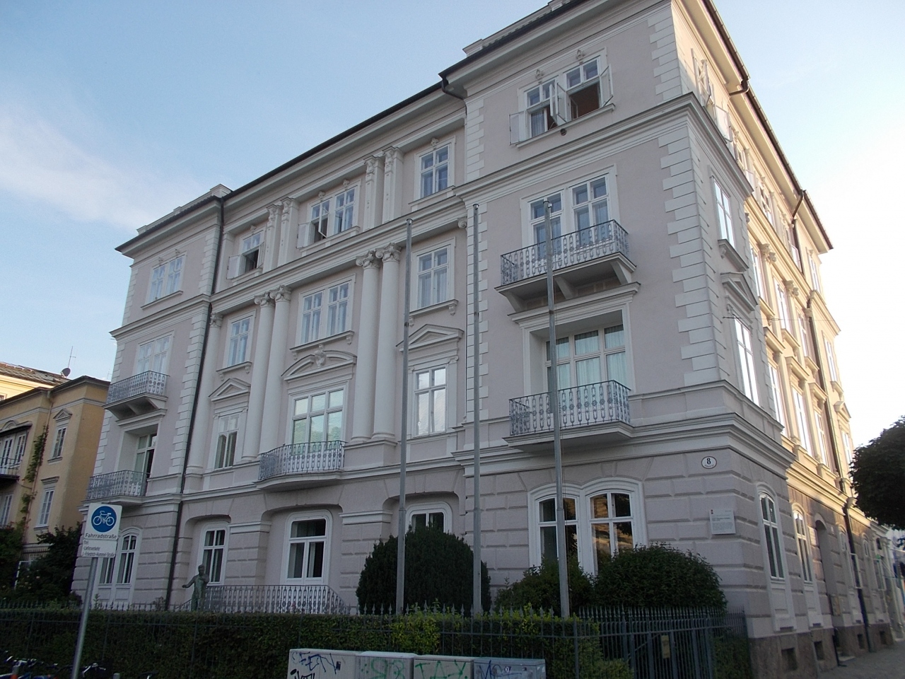 このカラヤンの生家は町の中央を流れるザルツァッハ川にかかるマカルト橋の近くにあります。橋の道路を挟んで反対側にあります。大きな館です。カラヤンの生家は財力があるという印象をもちます。内部には入っていません。入れるような入り口が見つからなかったです。