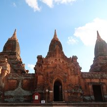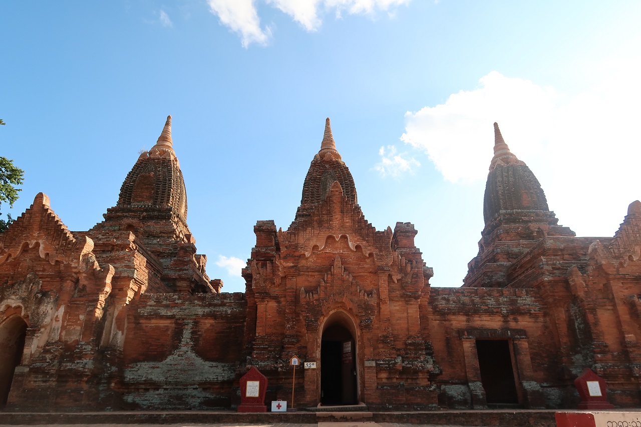 パヤートンズーとは3つの仏塔の意味。13世紀の建物です。建物の中は撮影禁止となっています。仏像は3体が祀られており、入って左側2体は色は落ちていますが、まずまずの保存状態です。右の1体は真っ白です。壁画も左側2つの建物内には残っていますが、色落ちが激しいです。右側は壁画はありませんでした。