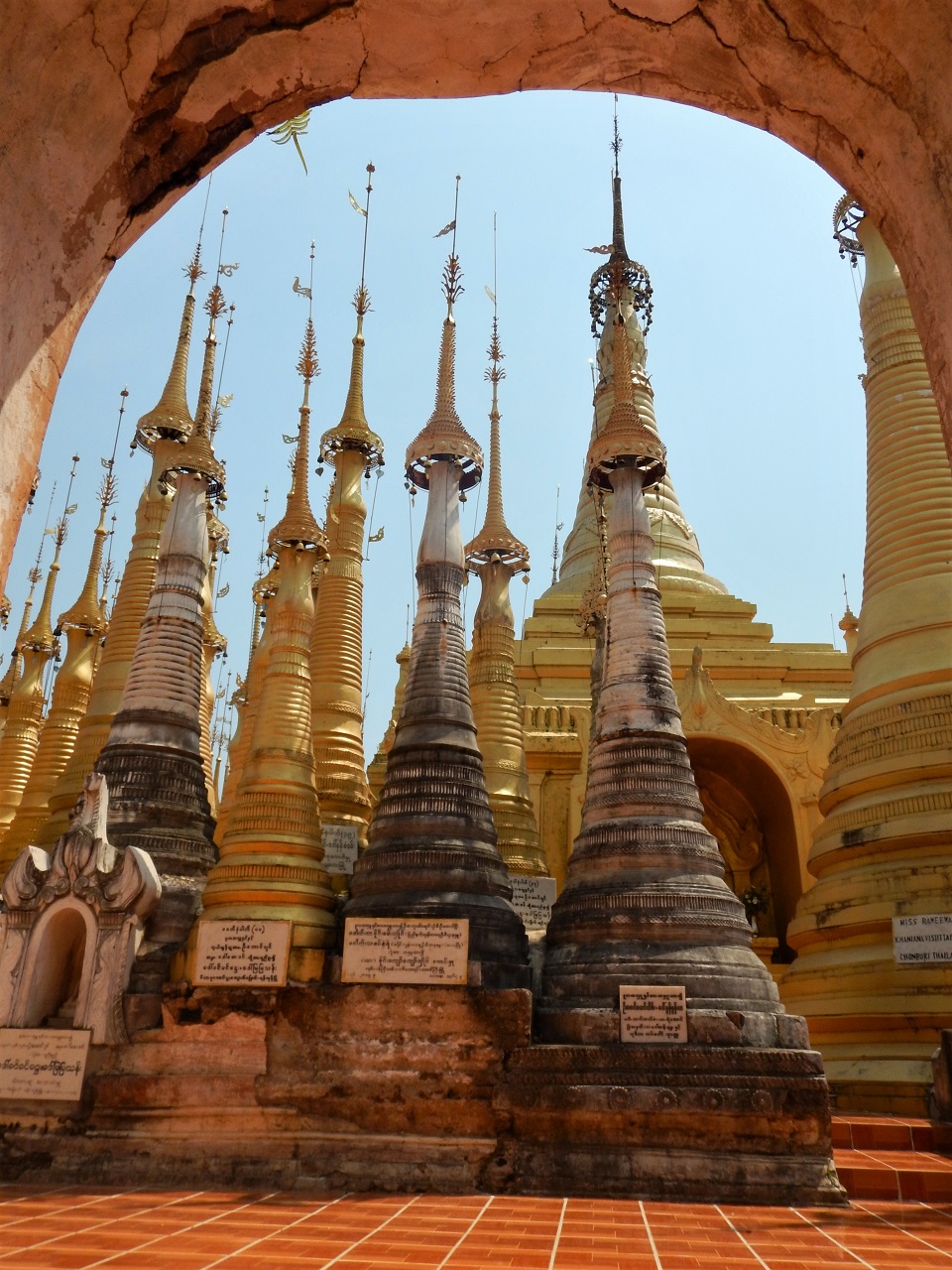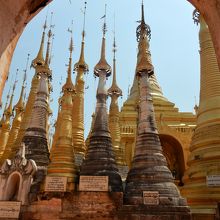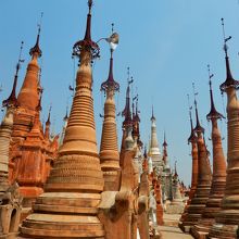1000を超える仏塔が立つ遺跡。シャン州の仏塔は細長いのが特徴。風が吹くと、塔の先端に取り付けられた風鈴が"シャラン、シャラン"と涼やかな音色を響かせます。並び立つ古い仏塔を眺めながら聞くこの風鈴の音は、本当に心地よいです。寺院も併設されています。